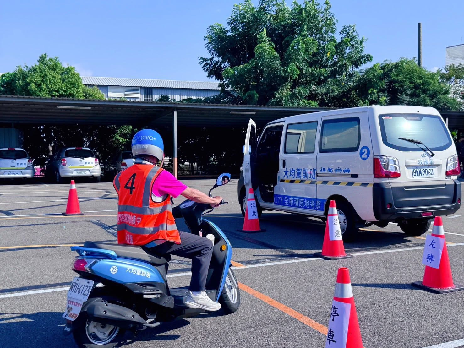 與臺中區監理所跨域合作辦理機車高齡回訓班,由大均駕訓班進行專業駕訓課程,提升高齡志工行的安全。