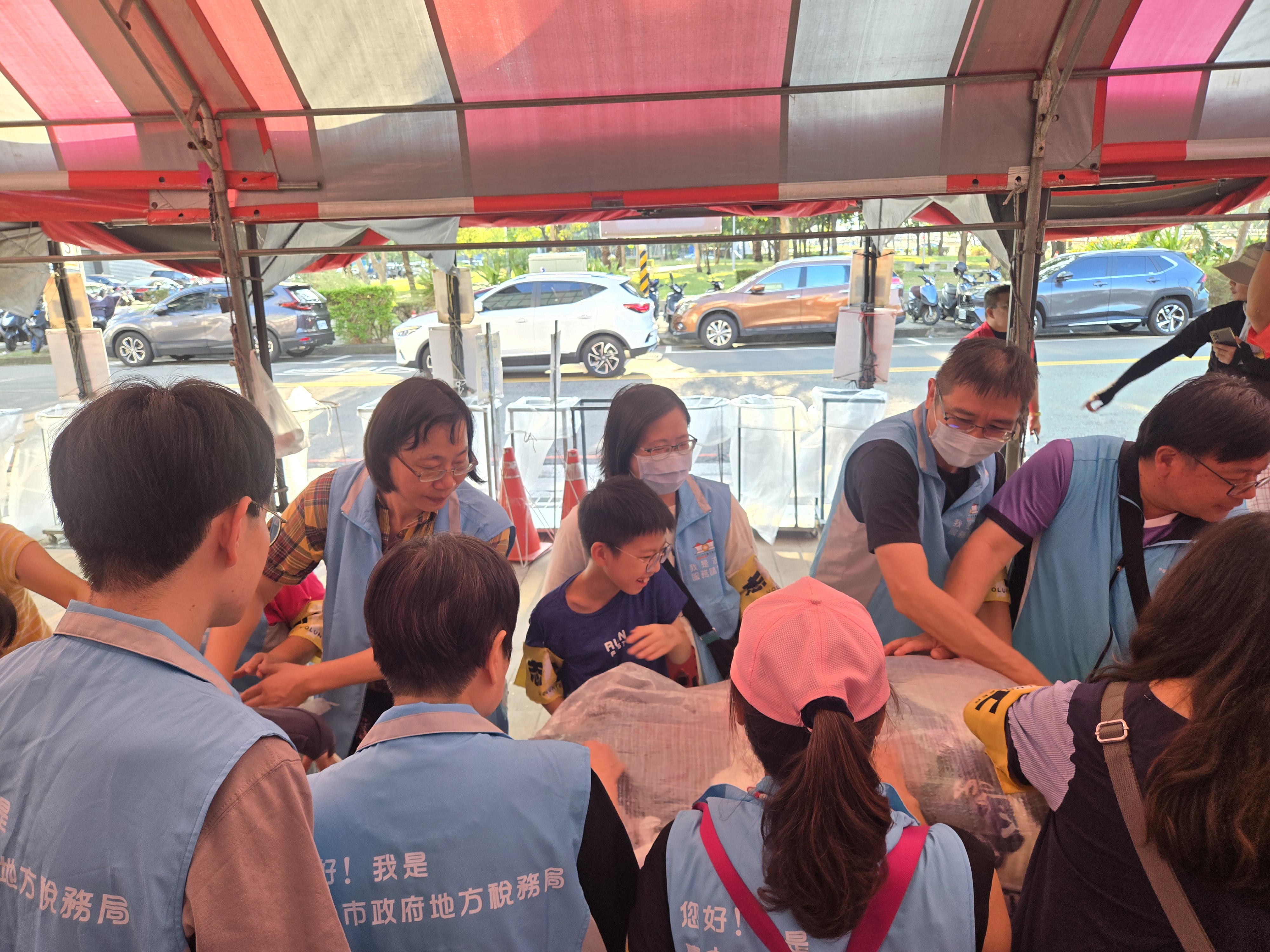 114年11月1日在烈日與灰塵中,志工們分工合作:分類、裝箱。