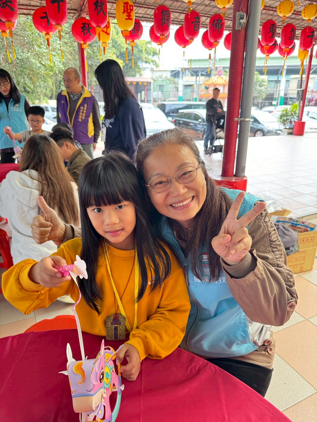 志工梁惠美小姐協助小朋友完成搖搖馬燈籠,開心合照!