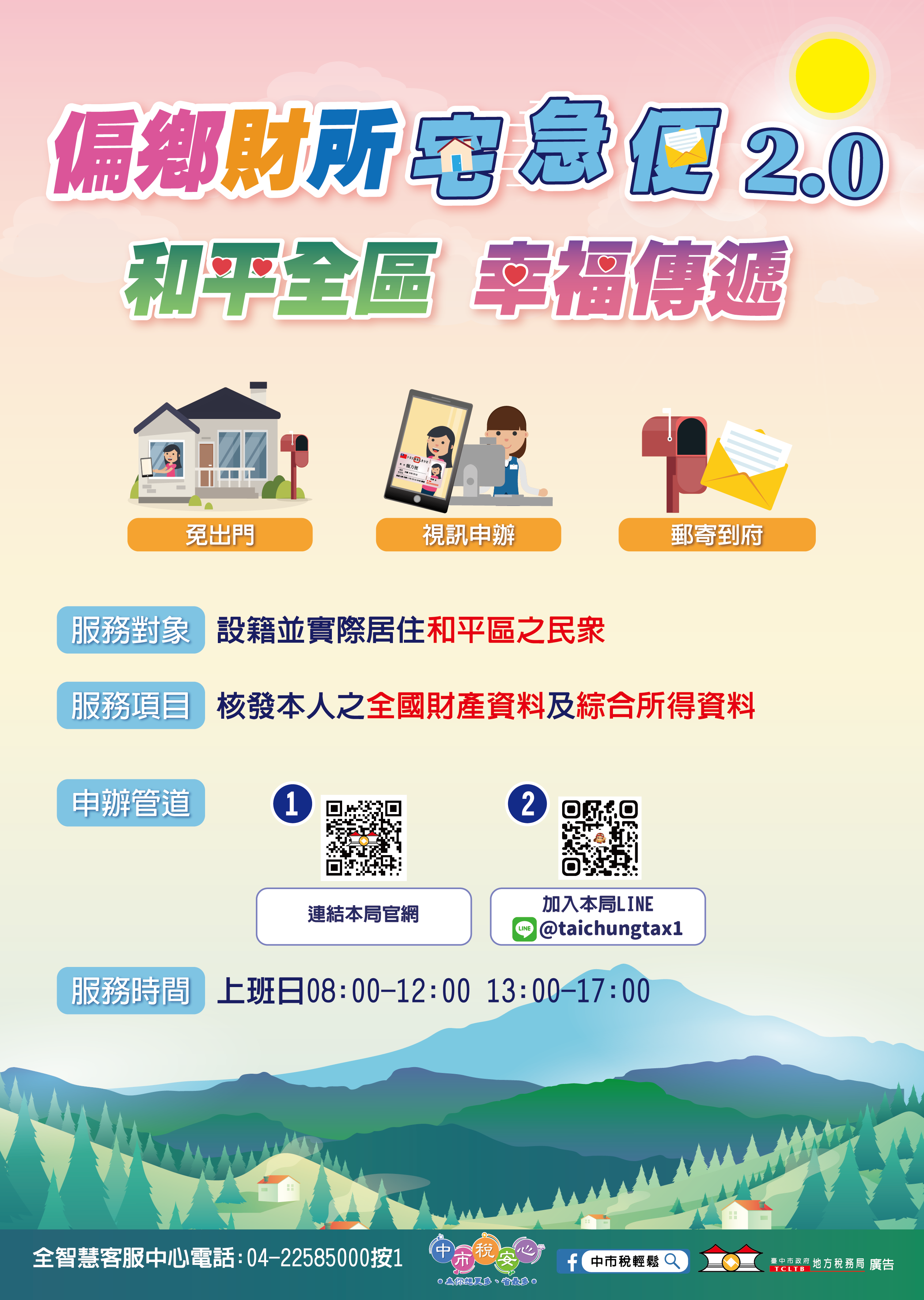 1. 備妥本人身分證 2. 加入本局LINE或連結本局官網 3. 視訊通話確認身分 4. 郵寄財所資料到府 |