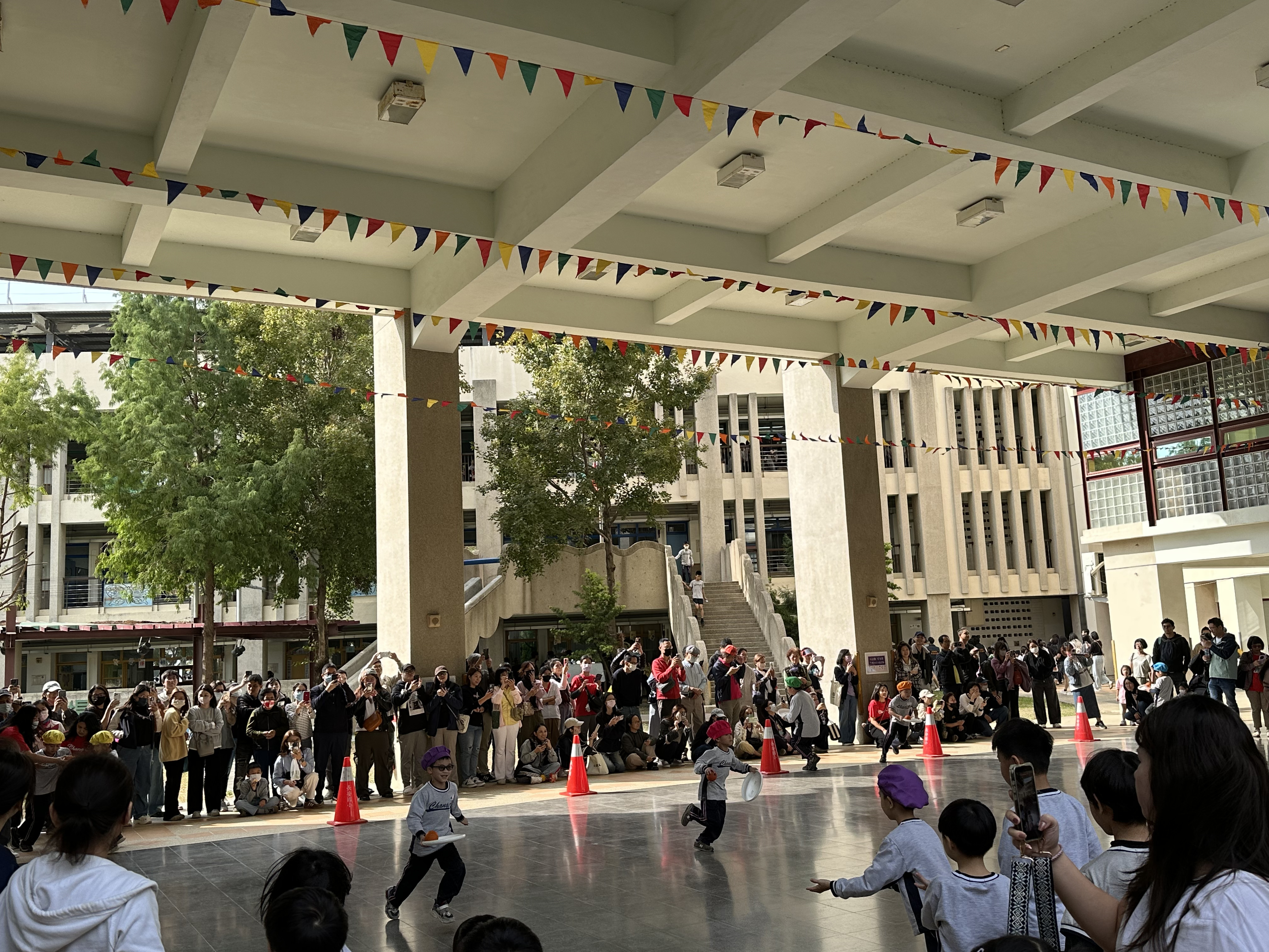 穿堂正在舉行趣味競賽活動,加油聲此起彼落,場面十分熱鬧。