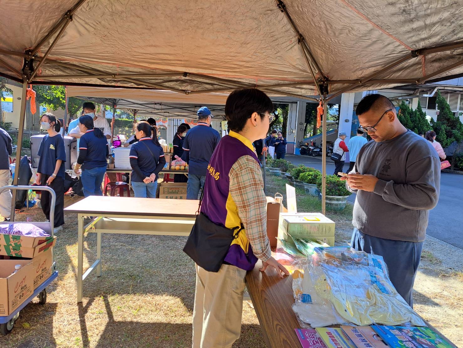 家長利用假日來學校參加活動,除了會和小孩一起參與趣味競賽,也會抽空來宣導攤位捐發票換好禮。