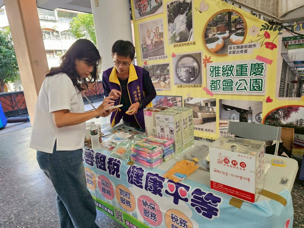 重慶國小34週年校慶活動開始囉!文心團隊受邀參與辦理租稅宣導活動,歡迎大家一起來捐發換好禮。