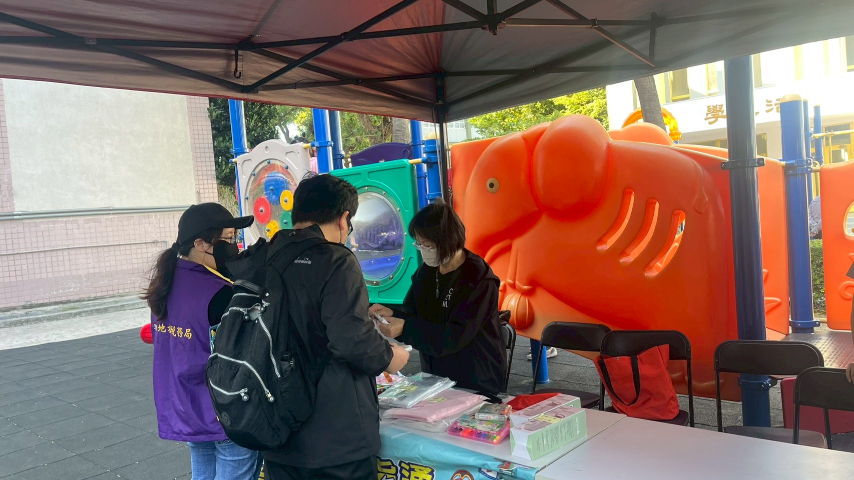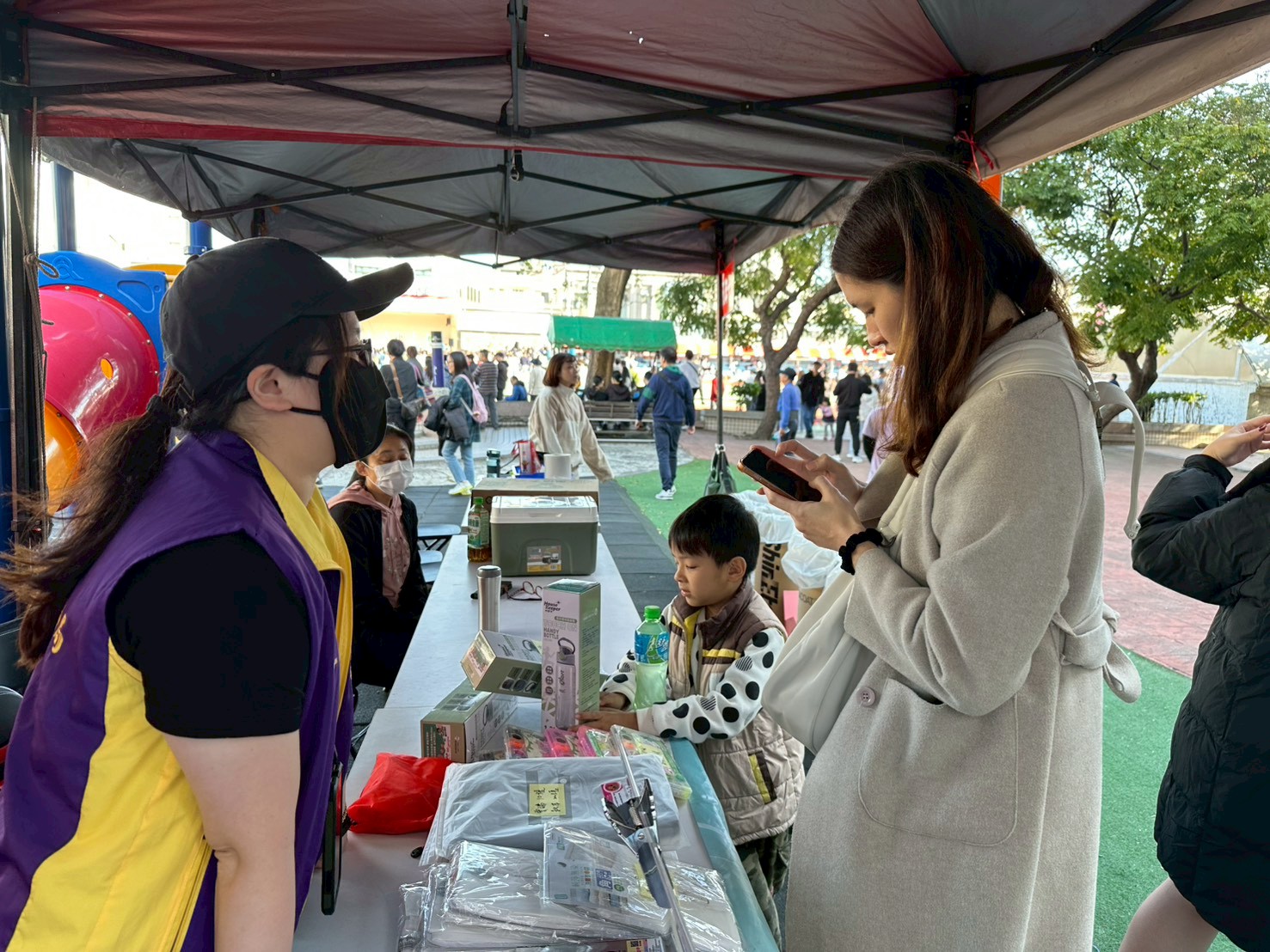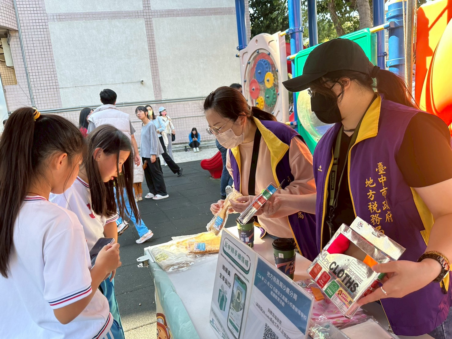 宣導同仁鼓勵現場的小朋友捐發票換好禮送愛心。