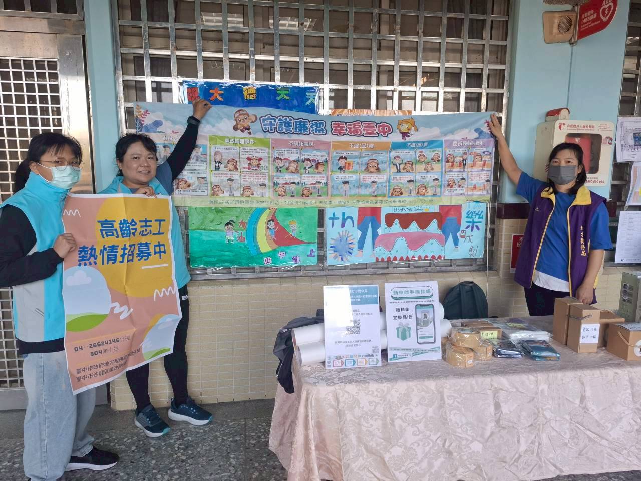 宣導同仁及志工設置宣導攤位,鼓勵大家一同捐發票換好禮做公益。