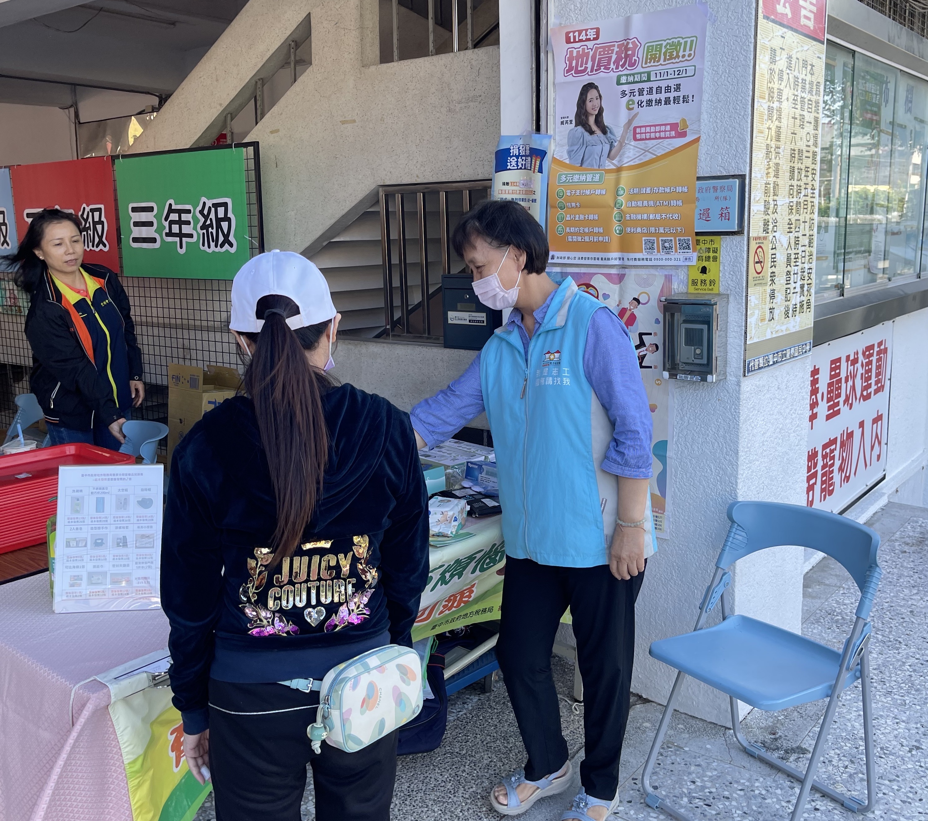 張貼海報宣傳114年地價稅於11月開徵,民眾可多加利用行動支付繳稅及「稅務解鎖攻略-線上閱讀認證活動」等訊息;懸掛布條宣傳納稅者權利保護法相關訊息。
