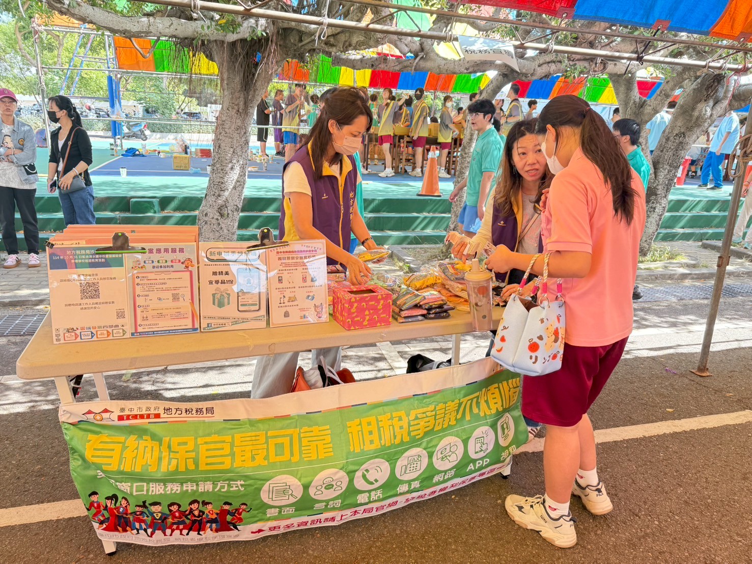 配合清水國中校慶暨園遊會辦理學校巡迴教育活動,於活動現場設置宣導櫃檯,琳瑯滿目的宣導品吸引大朋友小朋捐發票換好禮送愛心。