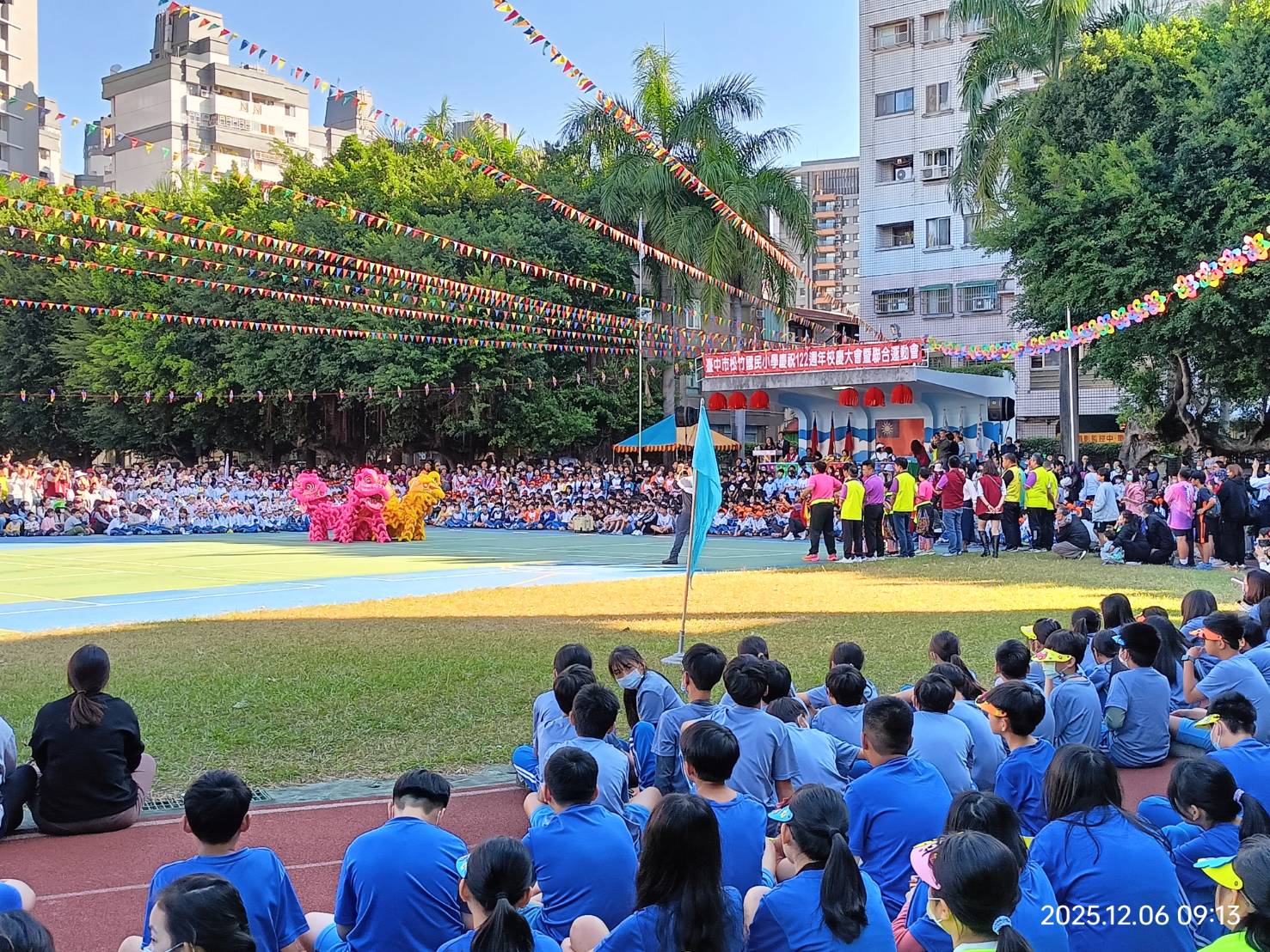 校慶活動舞龍舞獅表演熱鬧滾滾,操場聚集許多家長及學生。