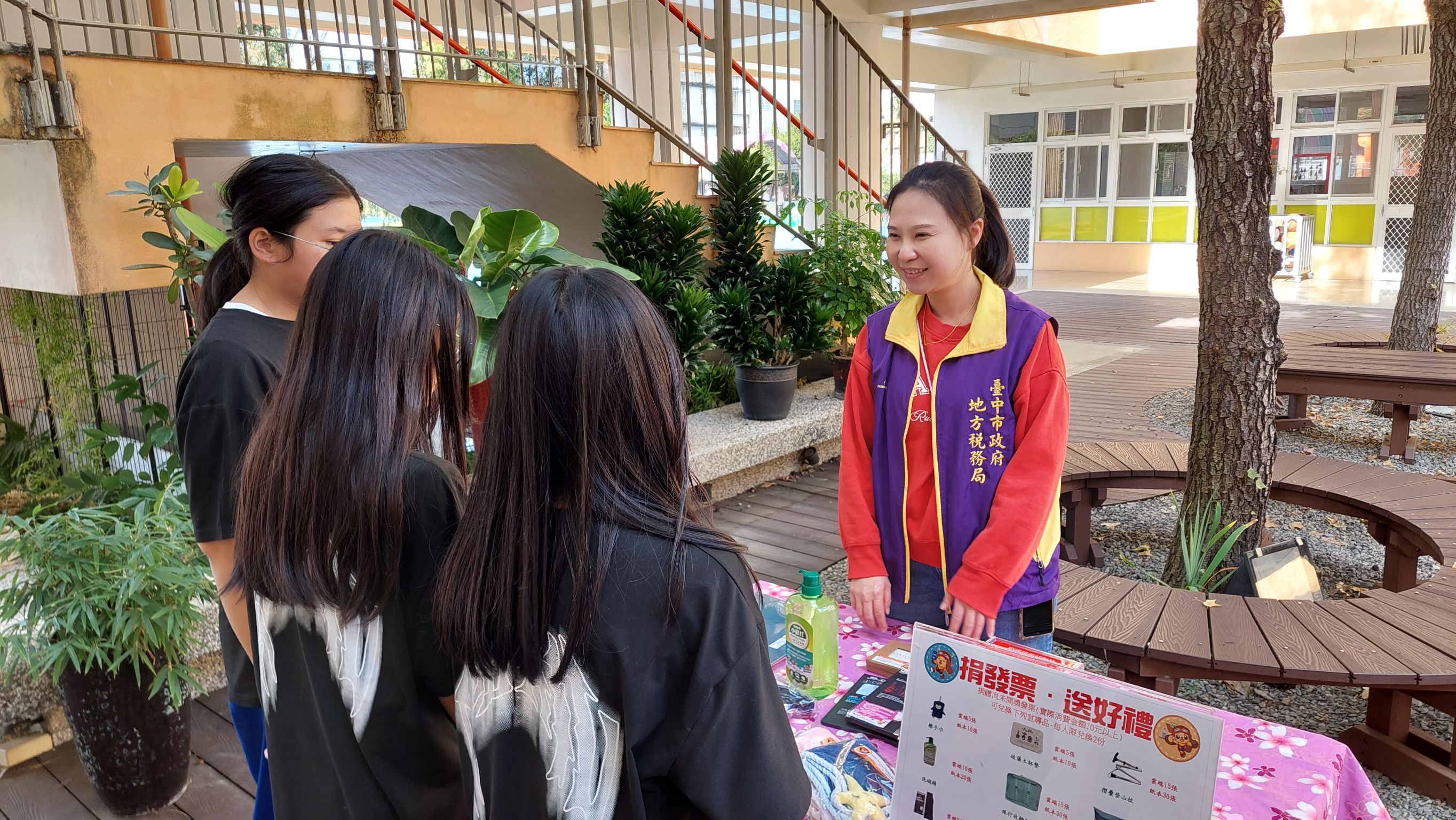設置稅務諮詢台,歡迎師生及家長回答租稅小問題參與捐發票獻愛心換好禮活動。