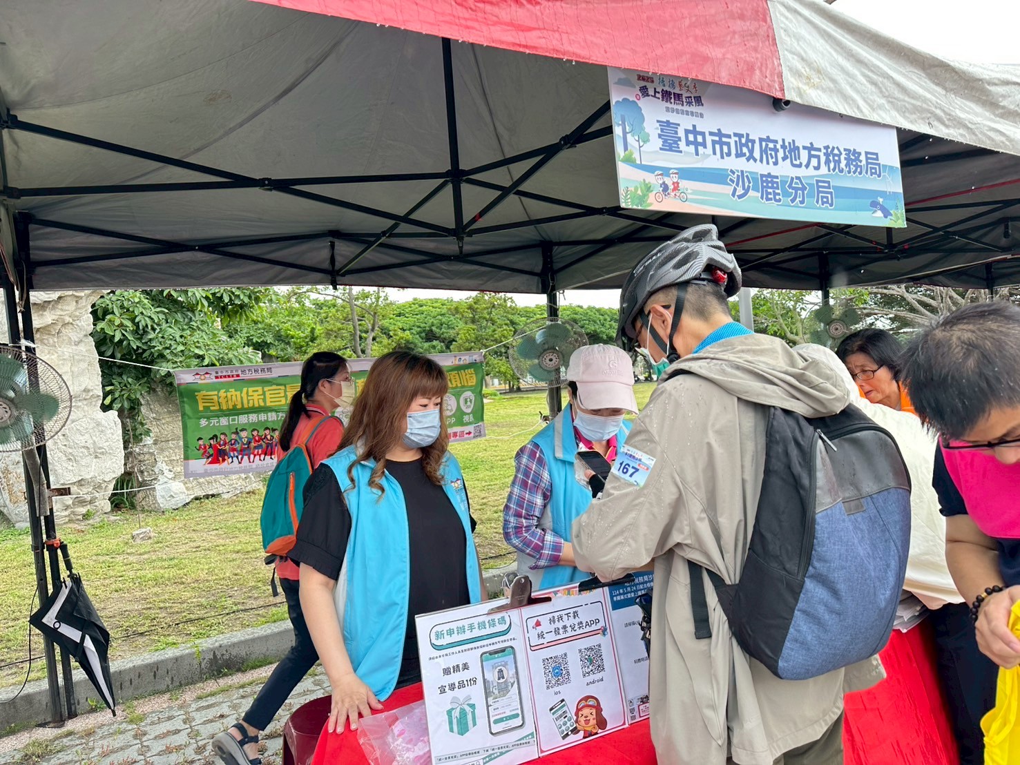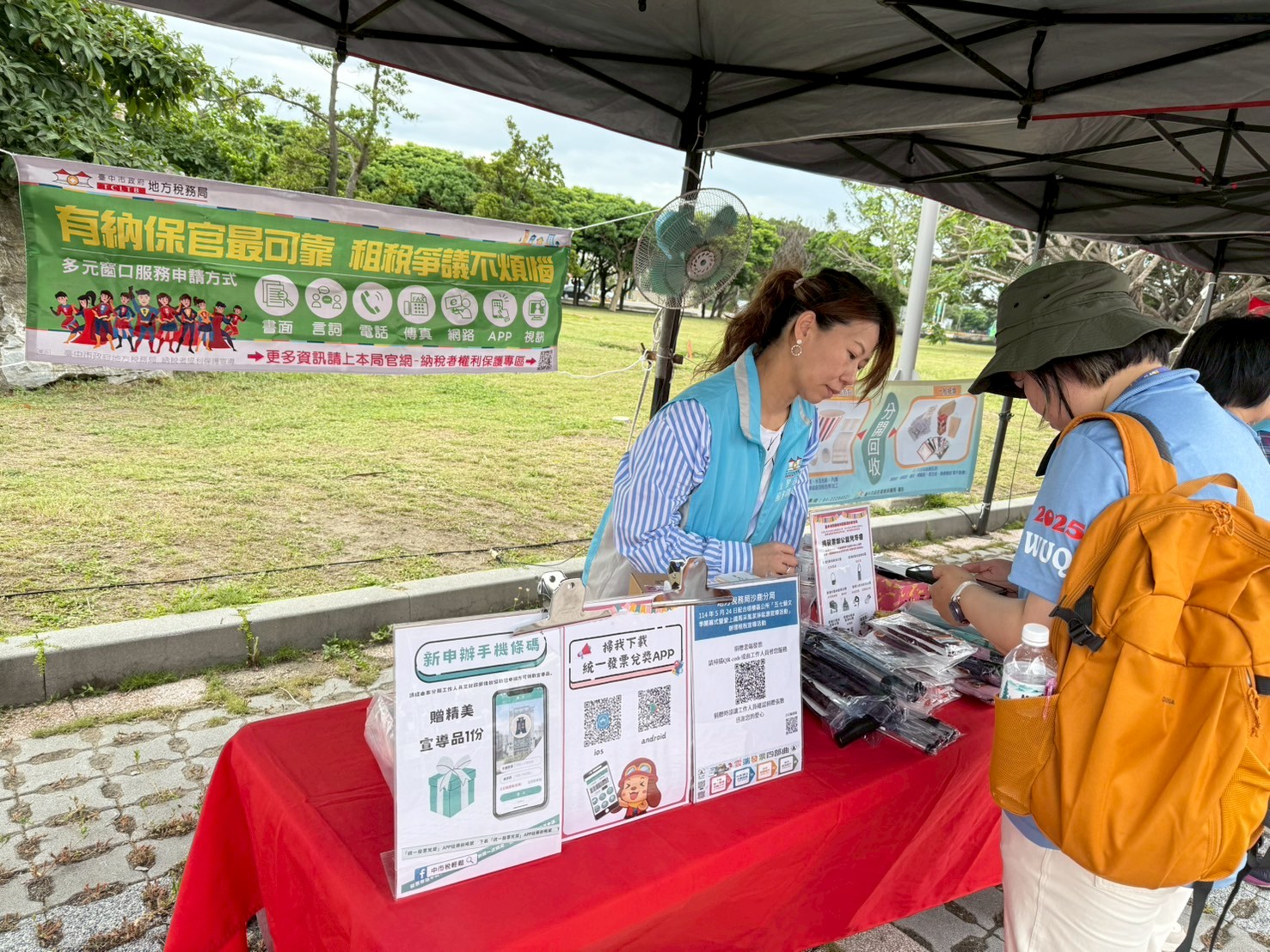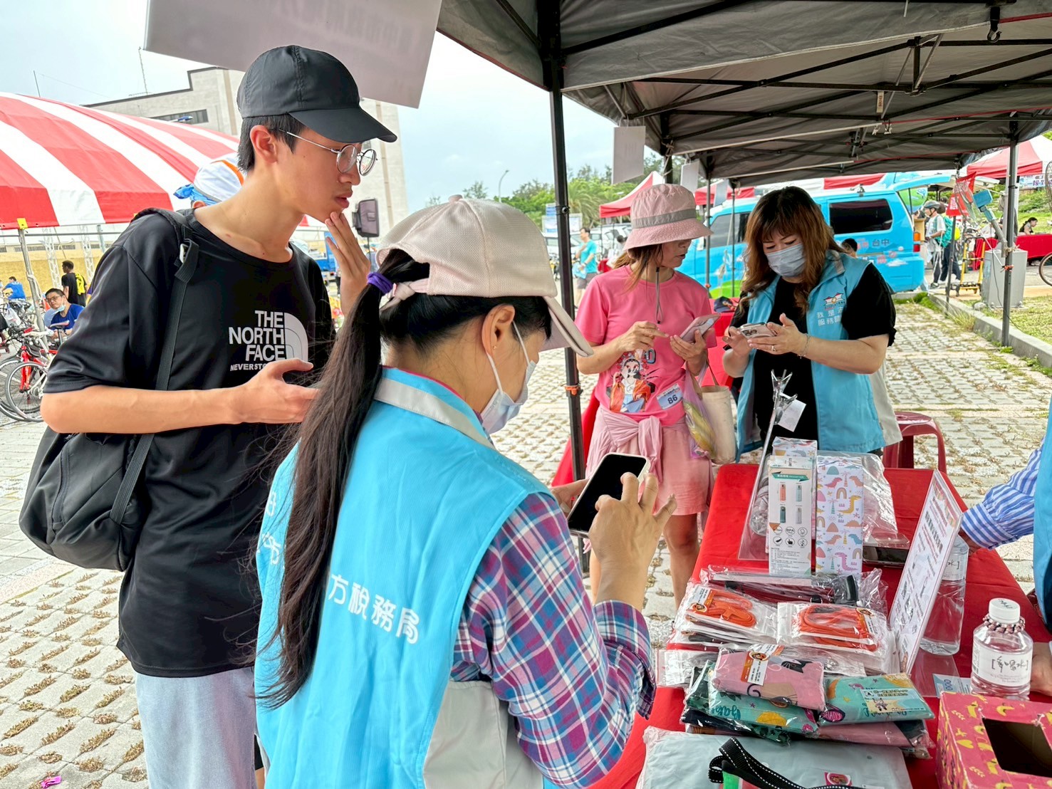 沙鹿分局114年5月24日配合梧棲區公所「五七藝文季開幕式暨愛上鐵馬采風潔淨能源宣導活動」辦理租稅宣導活動