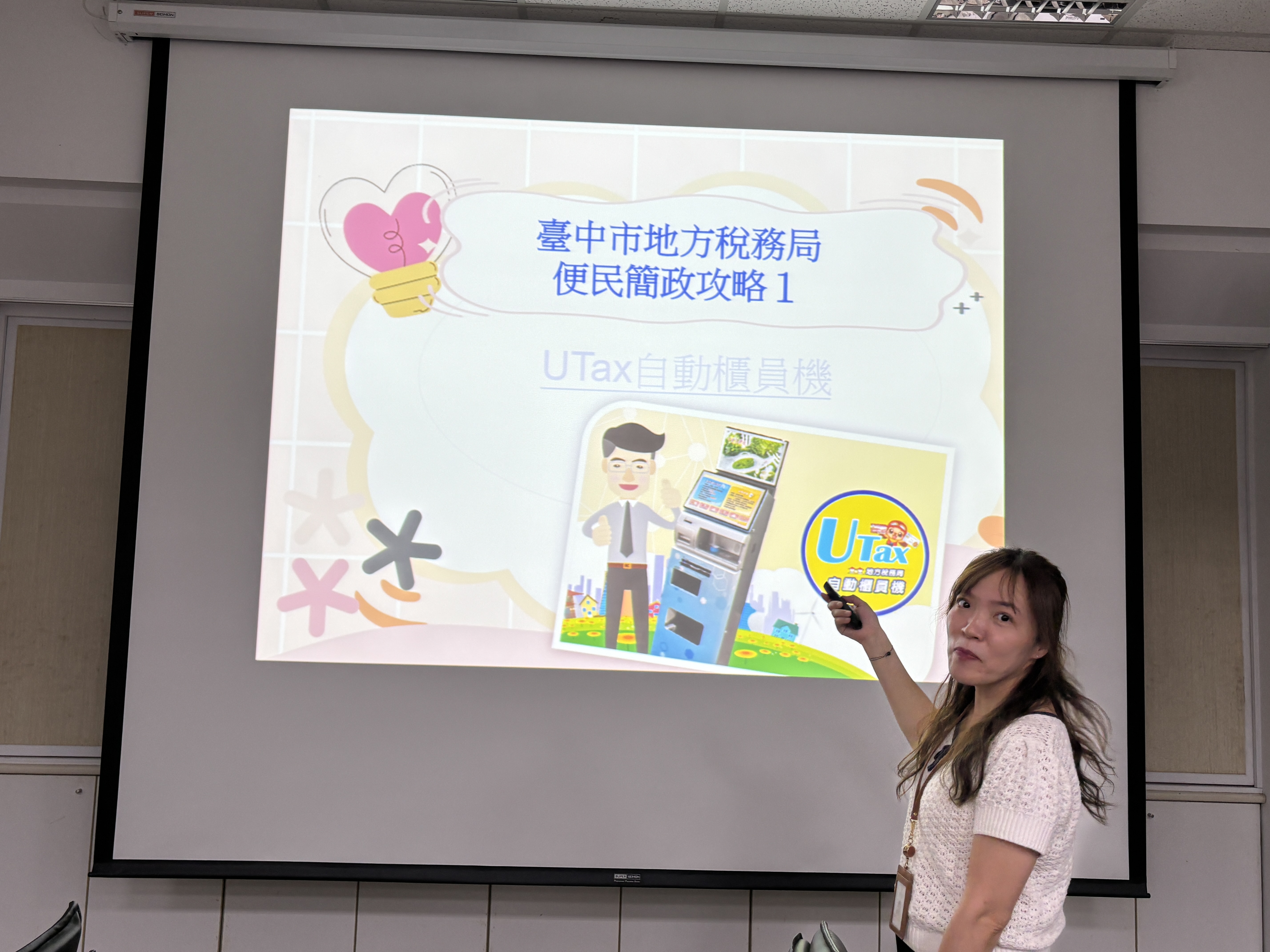 介紹便民簡政攻略,例如操作UTax(Your Tax)自動櫃員機核發證件,可縮短民眾洽公時間,有效提升便民服務。