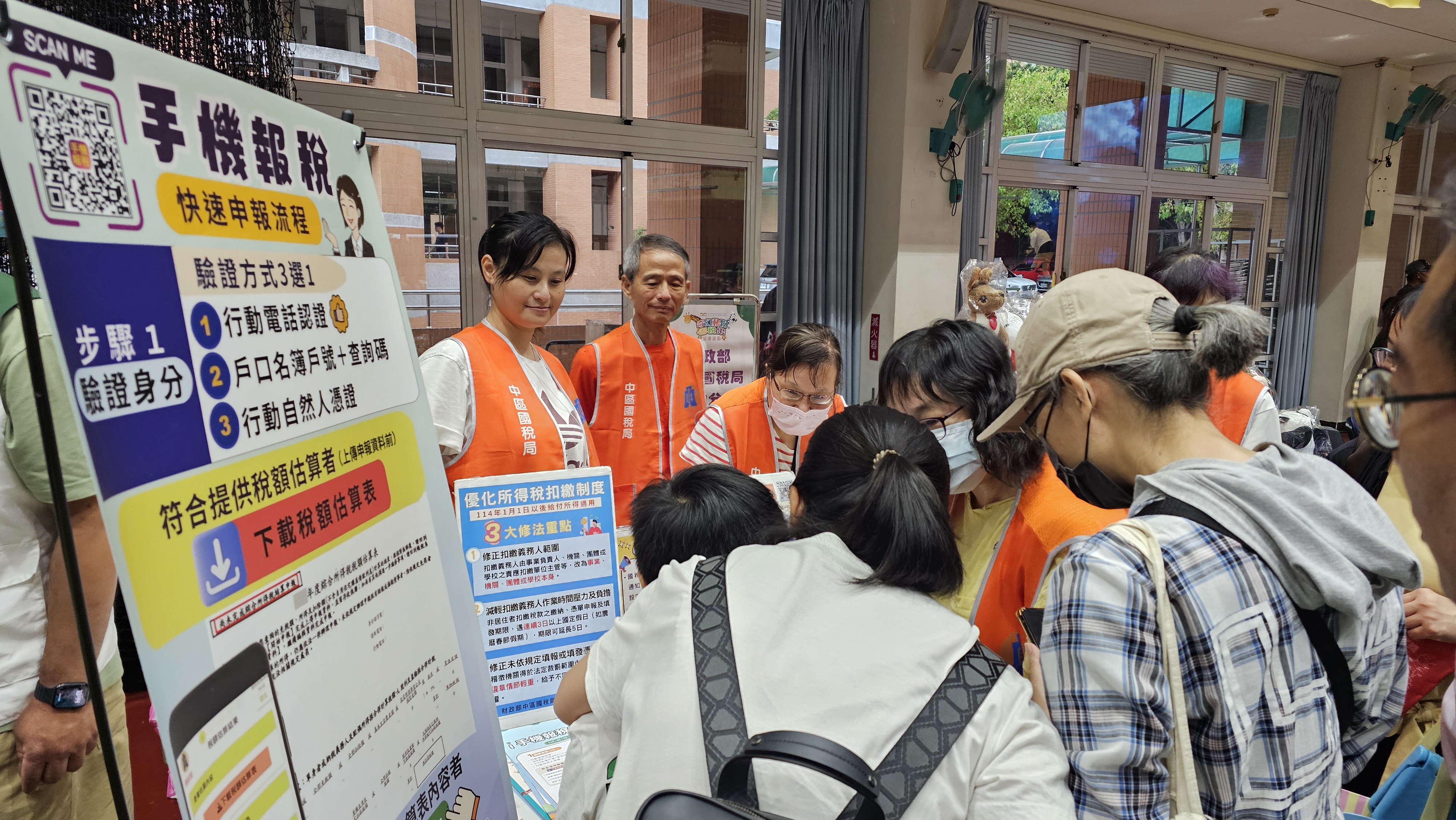現場也有國稅局前來配合設攤,讓民眾可以詢問及使用手機申報所得稅