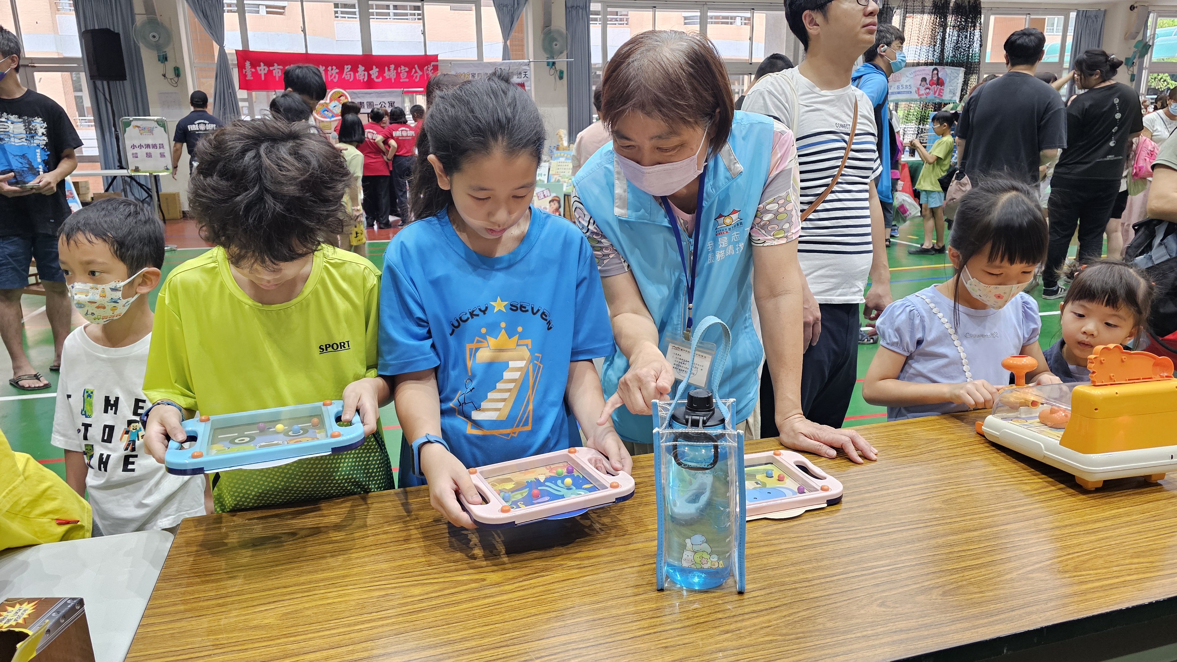 現場也有益智搖搖樂,在志工的輔導下,有趣之餘訓練小朋友平衡協作能力