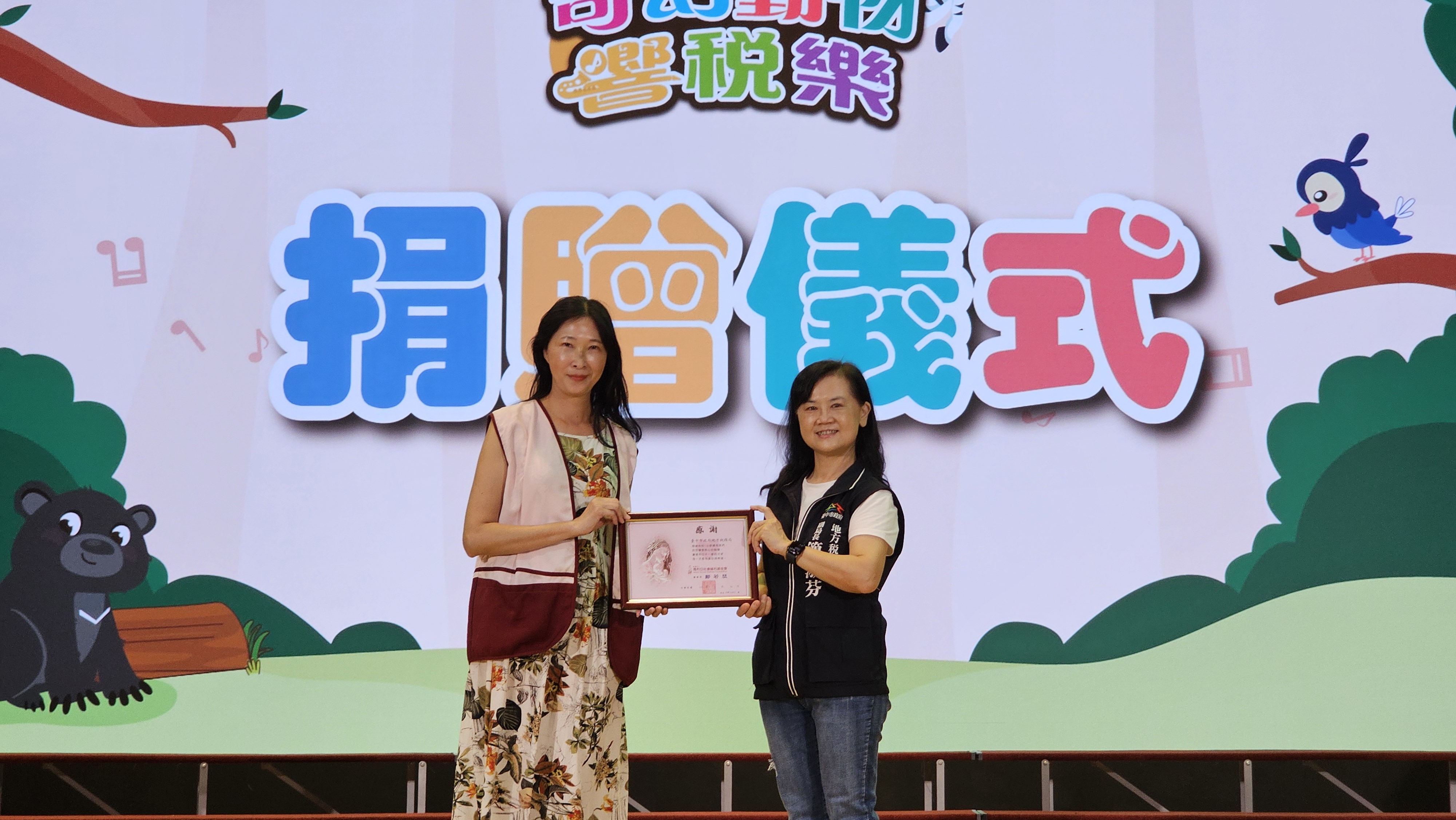 本局簡副局長代表捐贈本場募得的發票,瑪利亞基金會回贈感謝狀