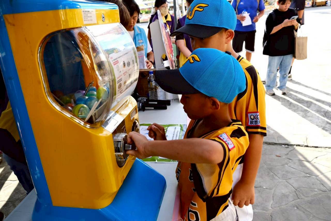 「蛋蛋轉不停~好禮轉回家」攤位提供扭蛋機,現場大小球迷靠運氣扭出喜愛好禮,捐發票玩扭蛋,不僅做公益還能獲得樂趣,愛心樂趣一次滿足。