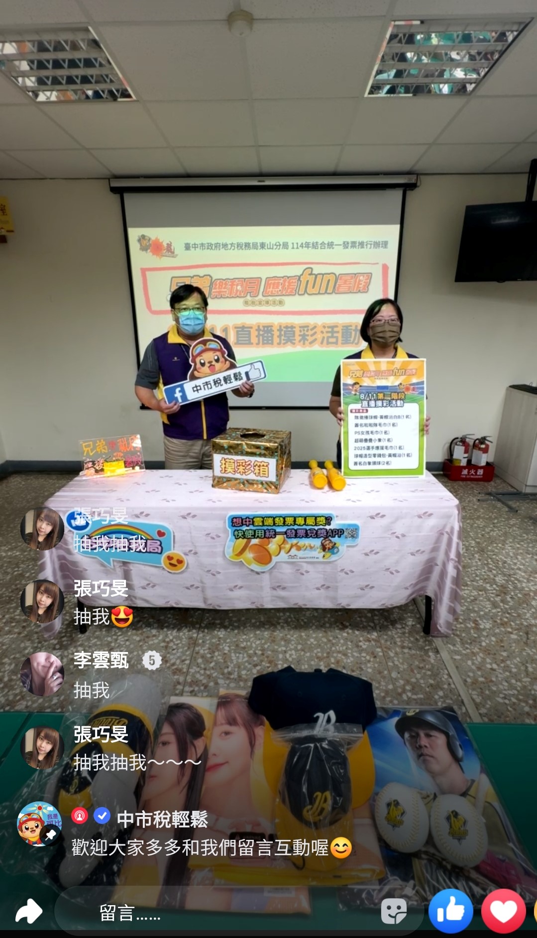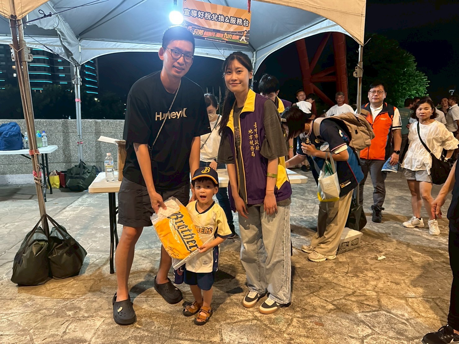 8/11於中市稅輕鬆舉辦直播摸彩活動,提供兄弟相關周邊商品如簽名球、簽名球帽等獎項,針對發票兌換門票的民眾,抽出幸運的觀眾。