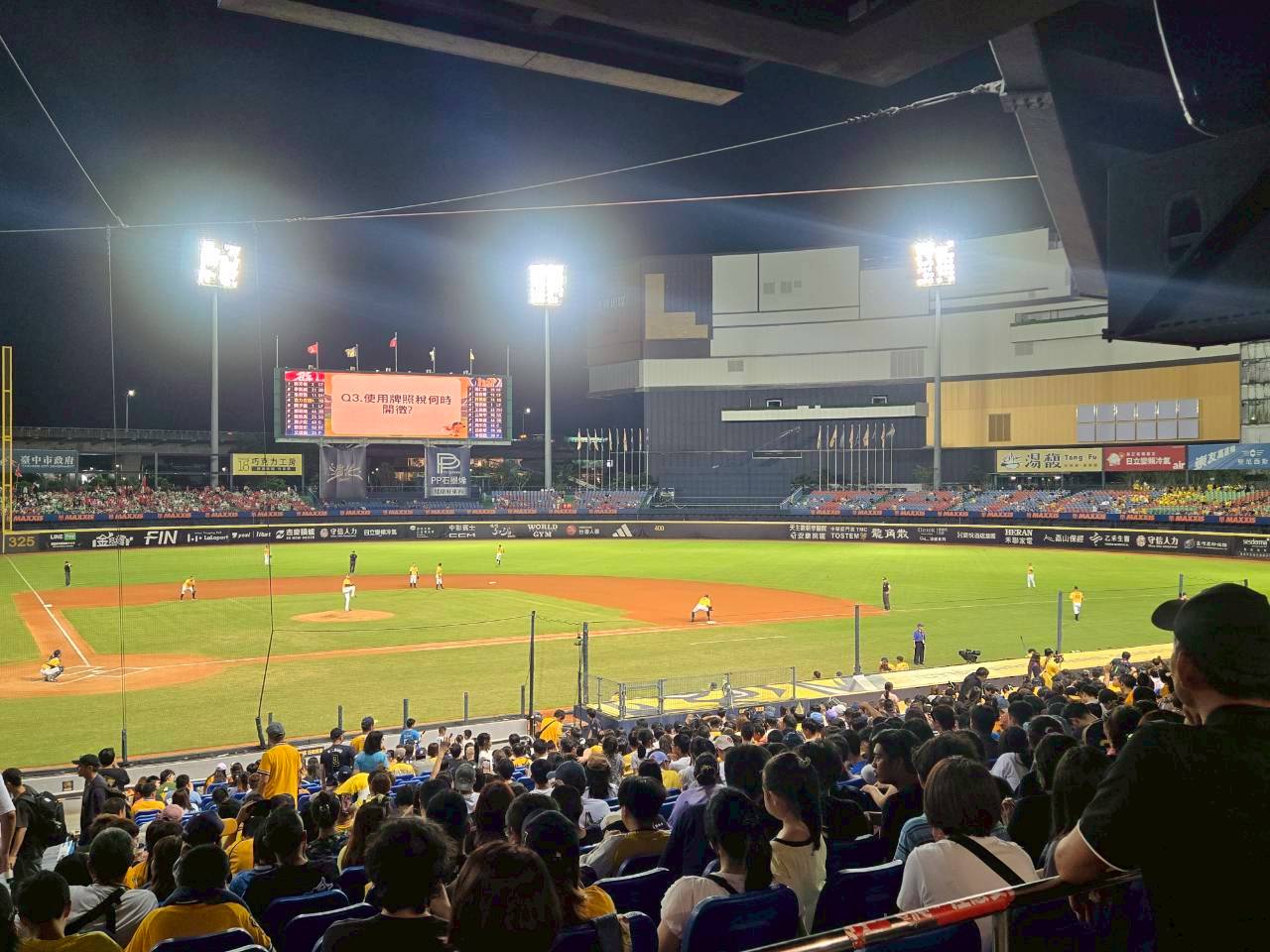 球場內發放應援小物-扇子給兌換門票的球迷們,一起呼喊加油聲揮舞扇子為支持的兄弟球員們應援。