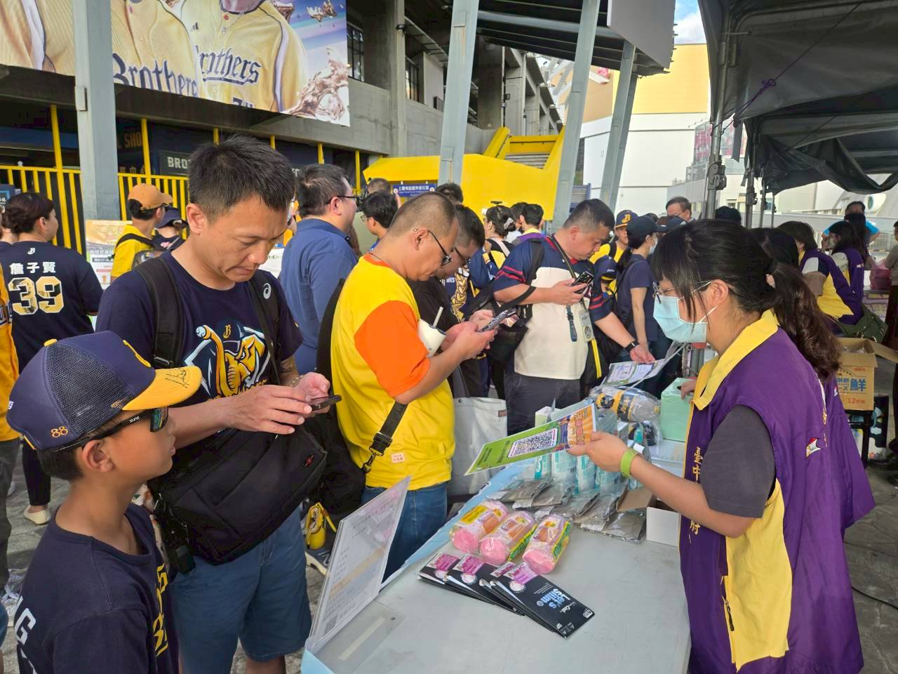 攤位提供多樣化宣導品,吸引來看棒球的球迷兌換,活動募集的發票將全數轉捐贈至慈善機構。