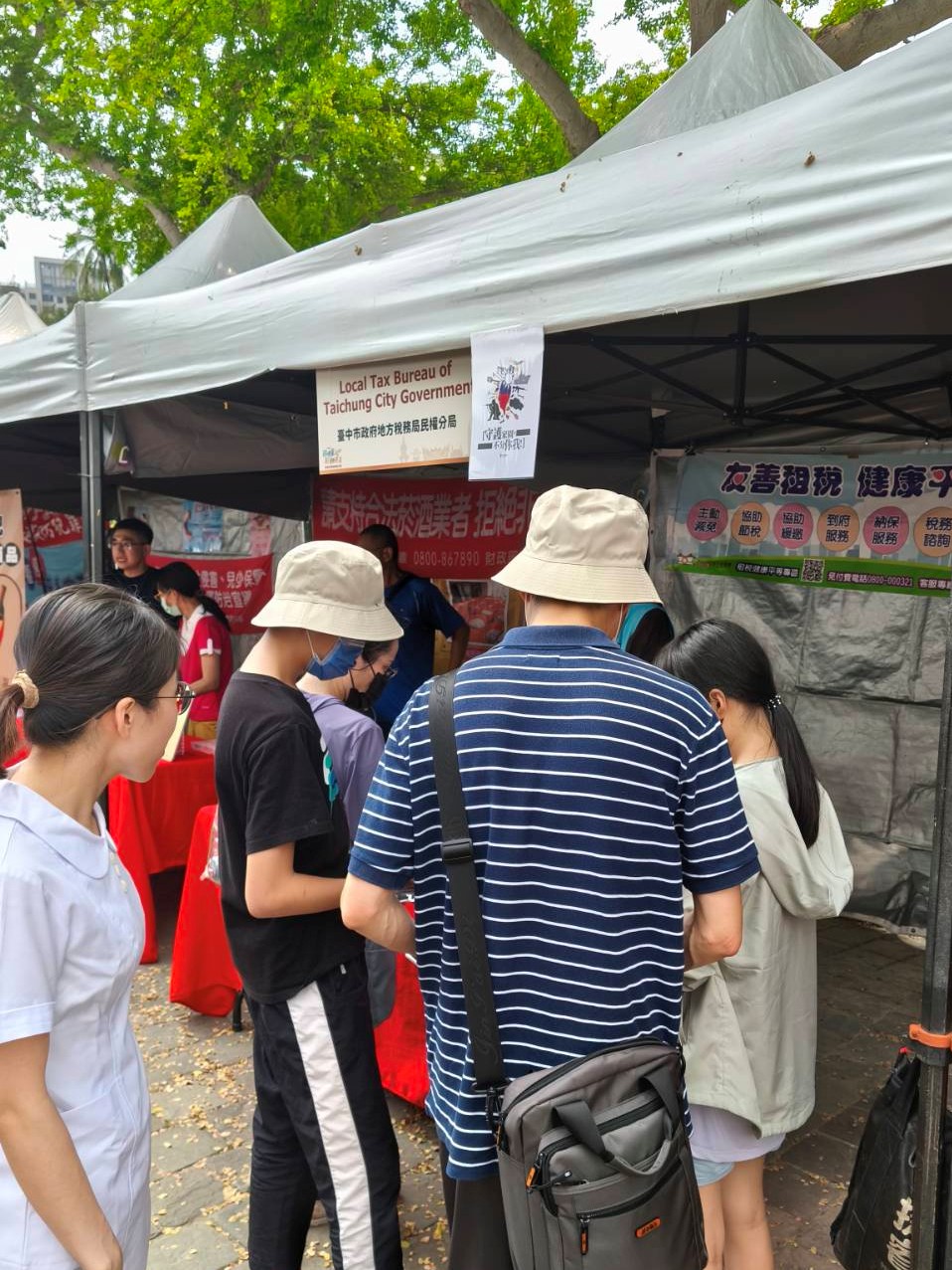 現場設置多個政府攤位,進行政令宣導與闖關活動,本分局也設攤進行稅務宣導;同時也有文創手作攤位,增添活動趣味與互動性。