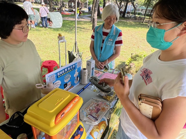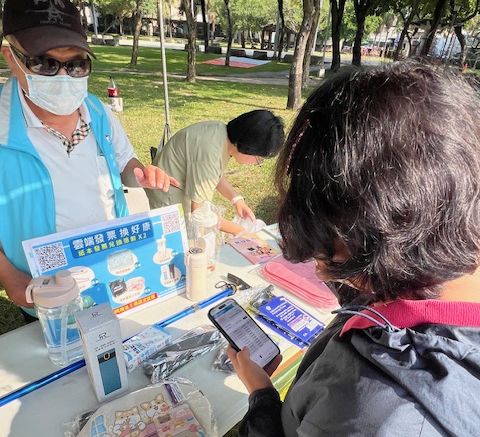 現場辦理捐贈愛心發票兌換精美宣導品,並推廣申辦手機條碼、下載「統一發票兌獎APP」及協助設定中獎獎金自動匯款帳戶。