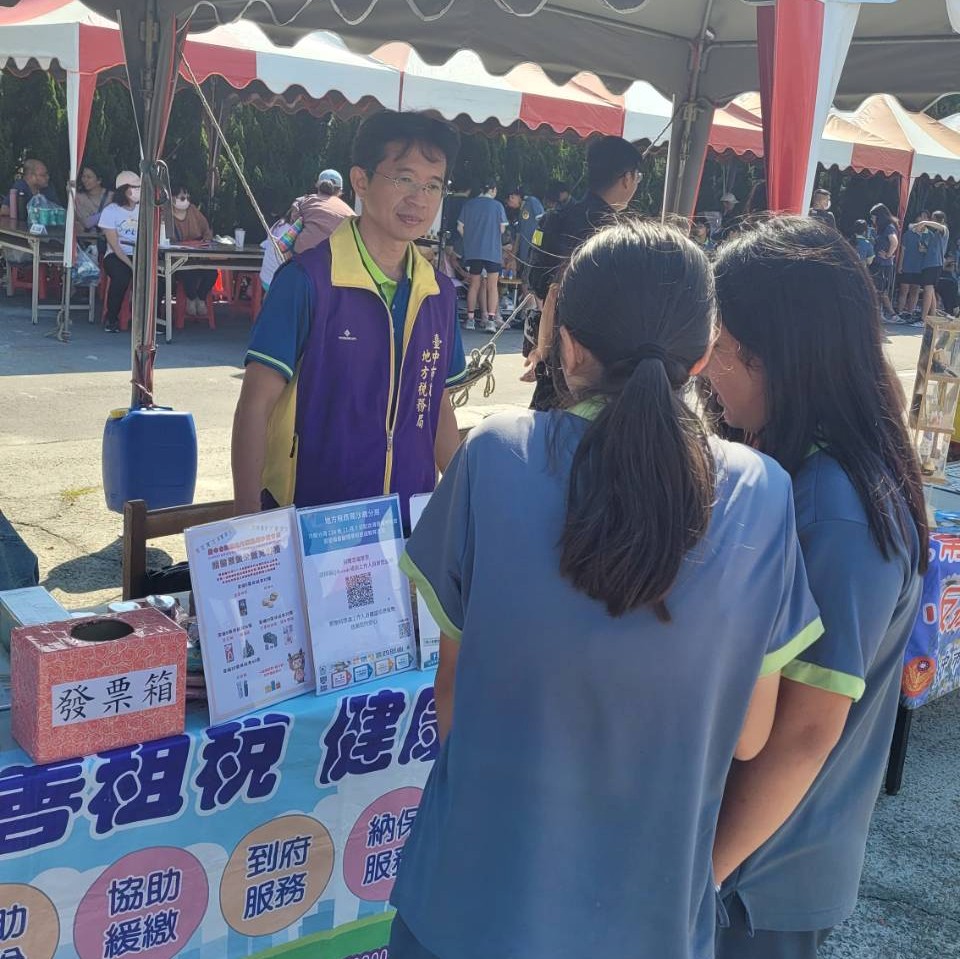 現場進行租稅快問快答闖關遊戲,宣導同仁從中向同學介紹地方稅等相關租稅知識,藉由寓教於樂的方式,吸引大朋友小朋友共同參與。