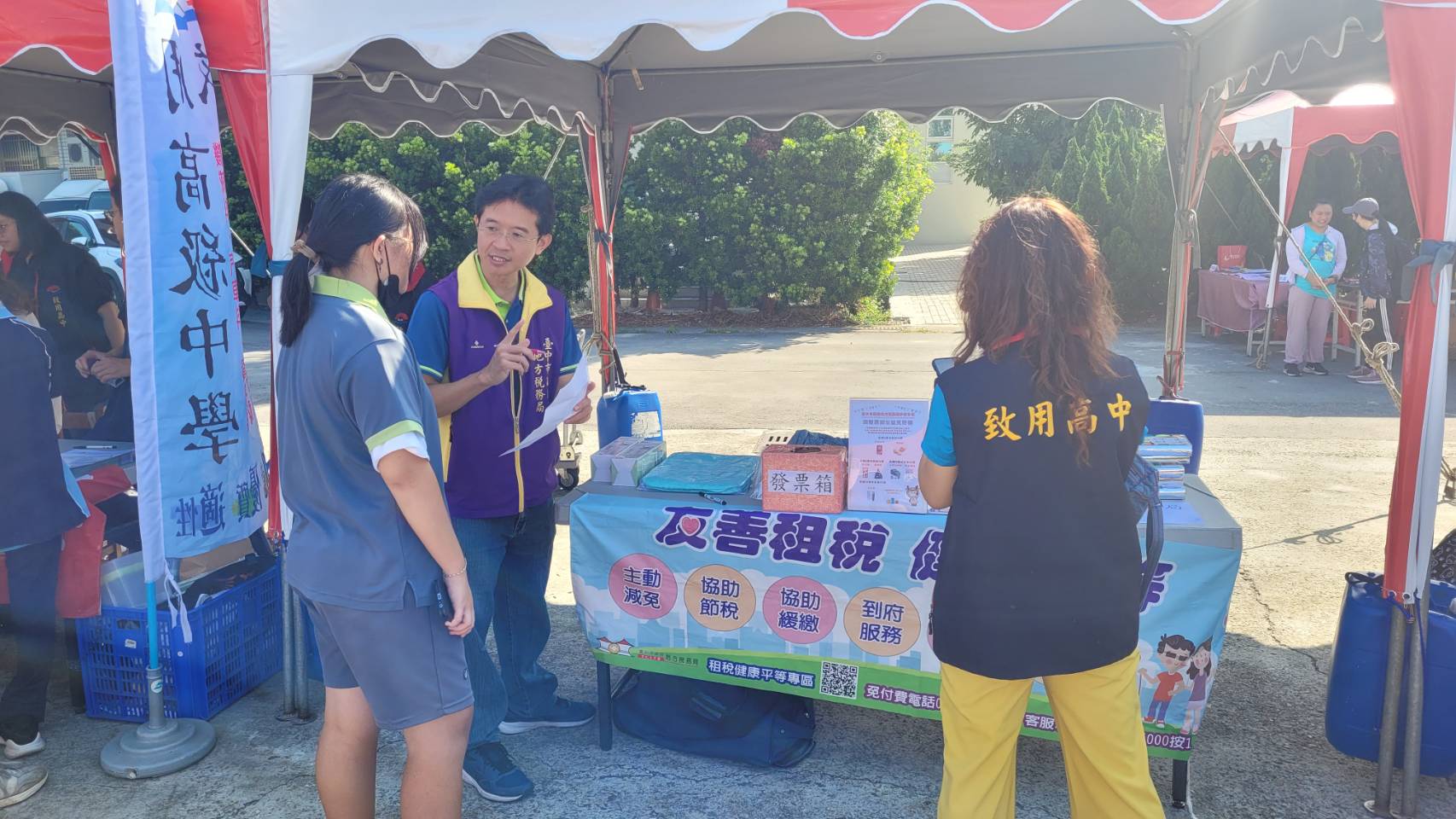 感謝學校邀請本分局配合校慶辦理租稅宣導活動,透過活動設置宣導服務台宣傳稅務資訊,並舉辦捐發票送愛心活動,現場募得之發票全數轉贈公益團體。