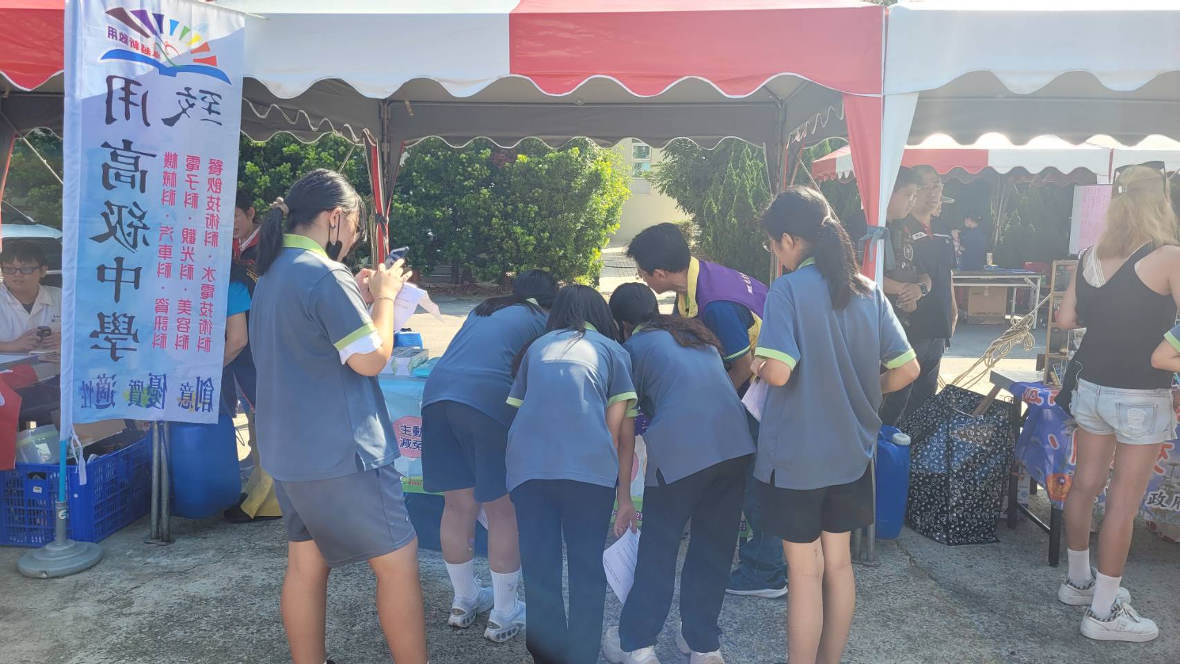 琳瑯滿目的宣導品吸引同學在攤前駐足。