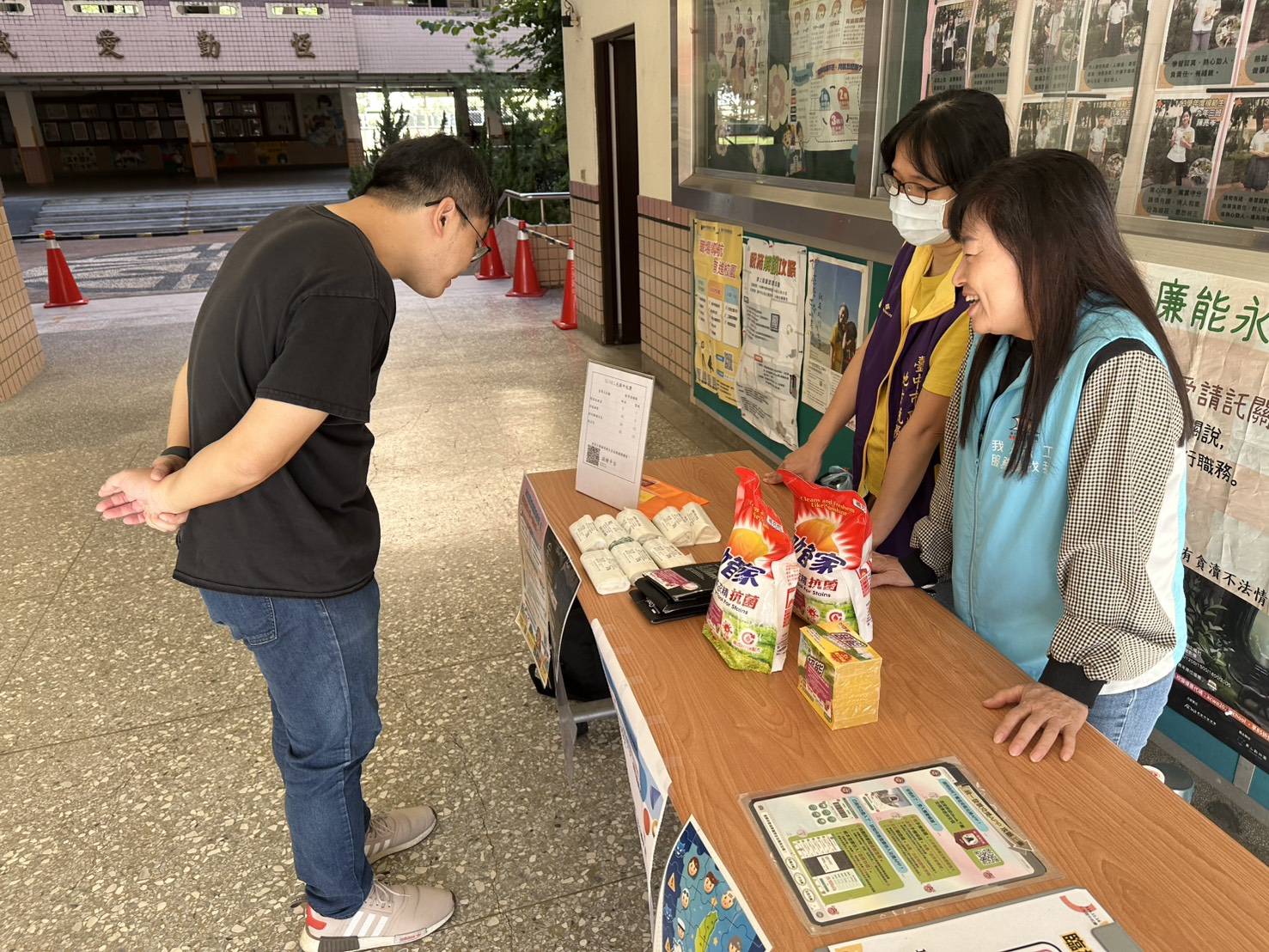 實用性的宣導品吸引民眾光顧攤位,宣導捐贈發票可以兌換宣導品,活動募集的發票將全數轉捐贈至慈善機構團體。