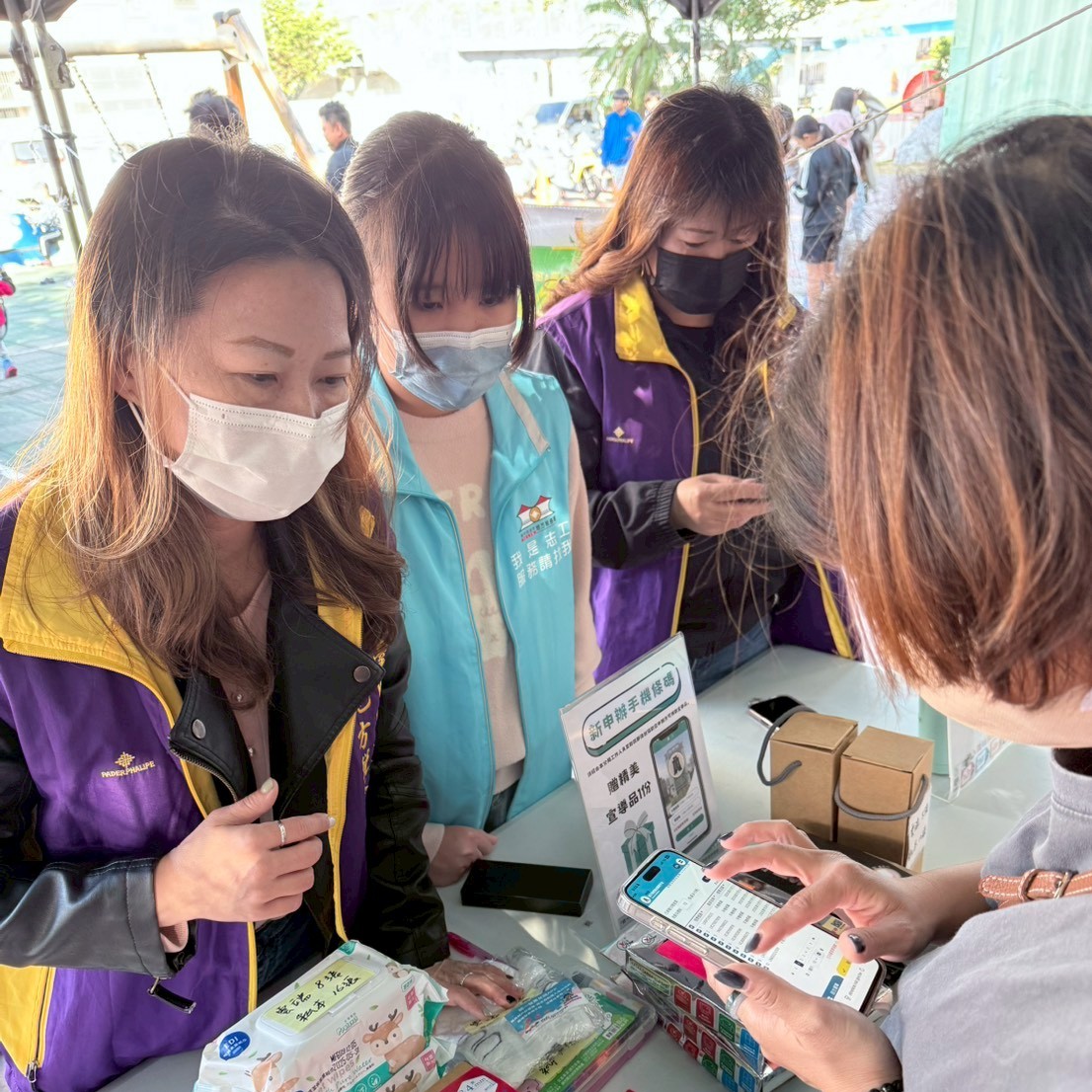 宣導同仁及志工鉅細靡遺地向民眾說明捐贈雲端發票操作流程。