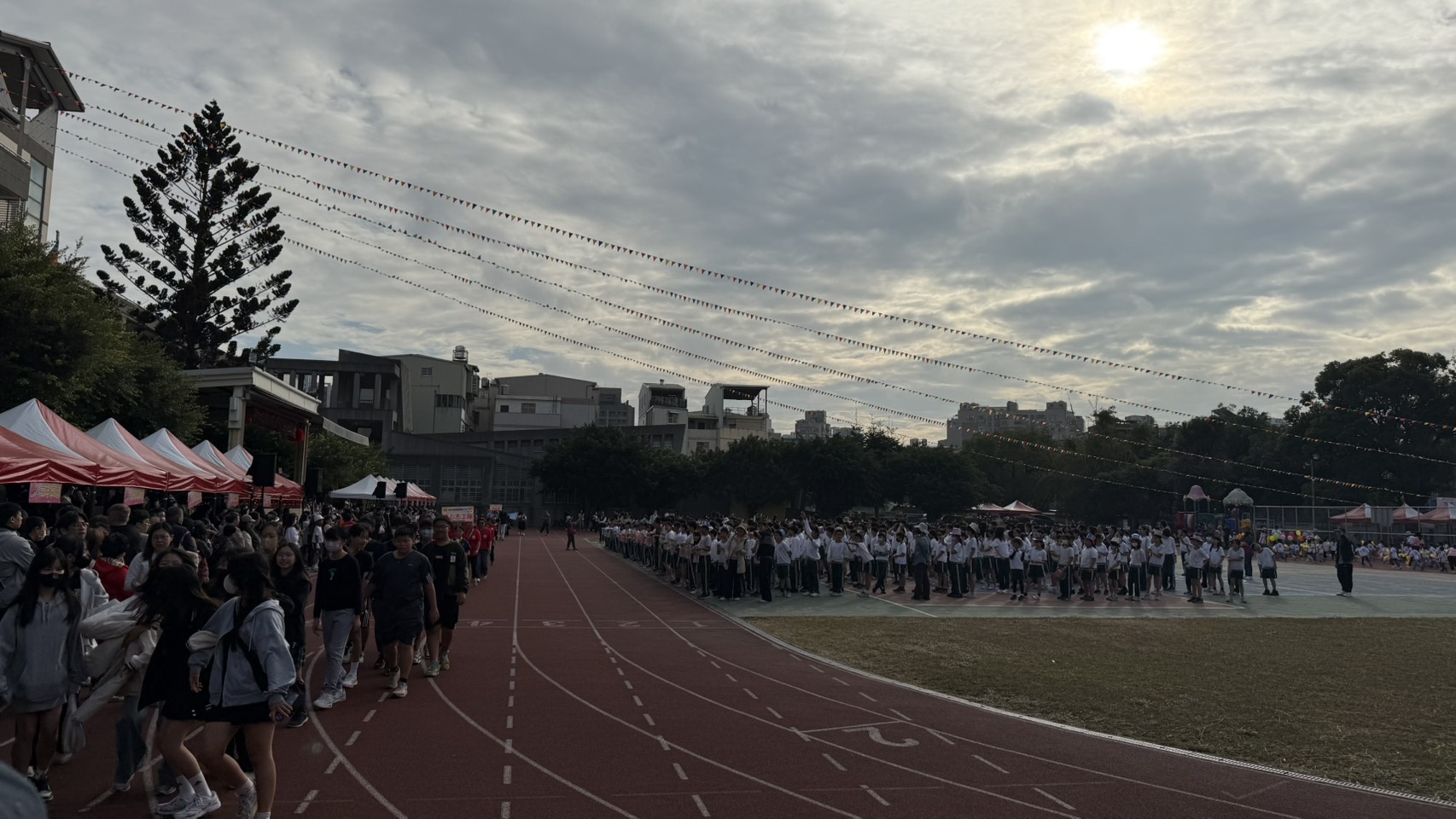 運動會正式開場,操場聚集許多學生,氣氛熱鬧滾滾。
