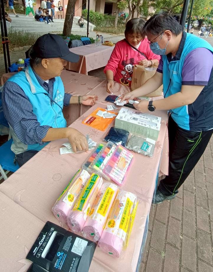 工作人員及志工依照宣導品兌換表,協助數紙本發票張數。