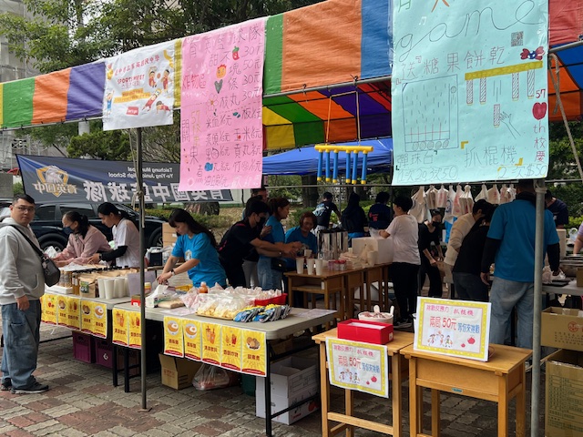 校慶運動現場還有愛心攤位販賣熟食點心,位同學們運動之餘補充體力。
