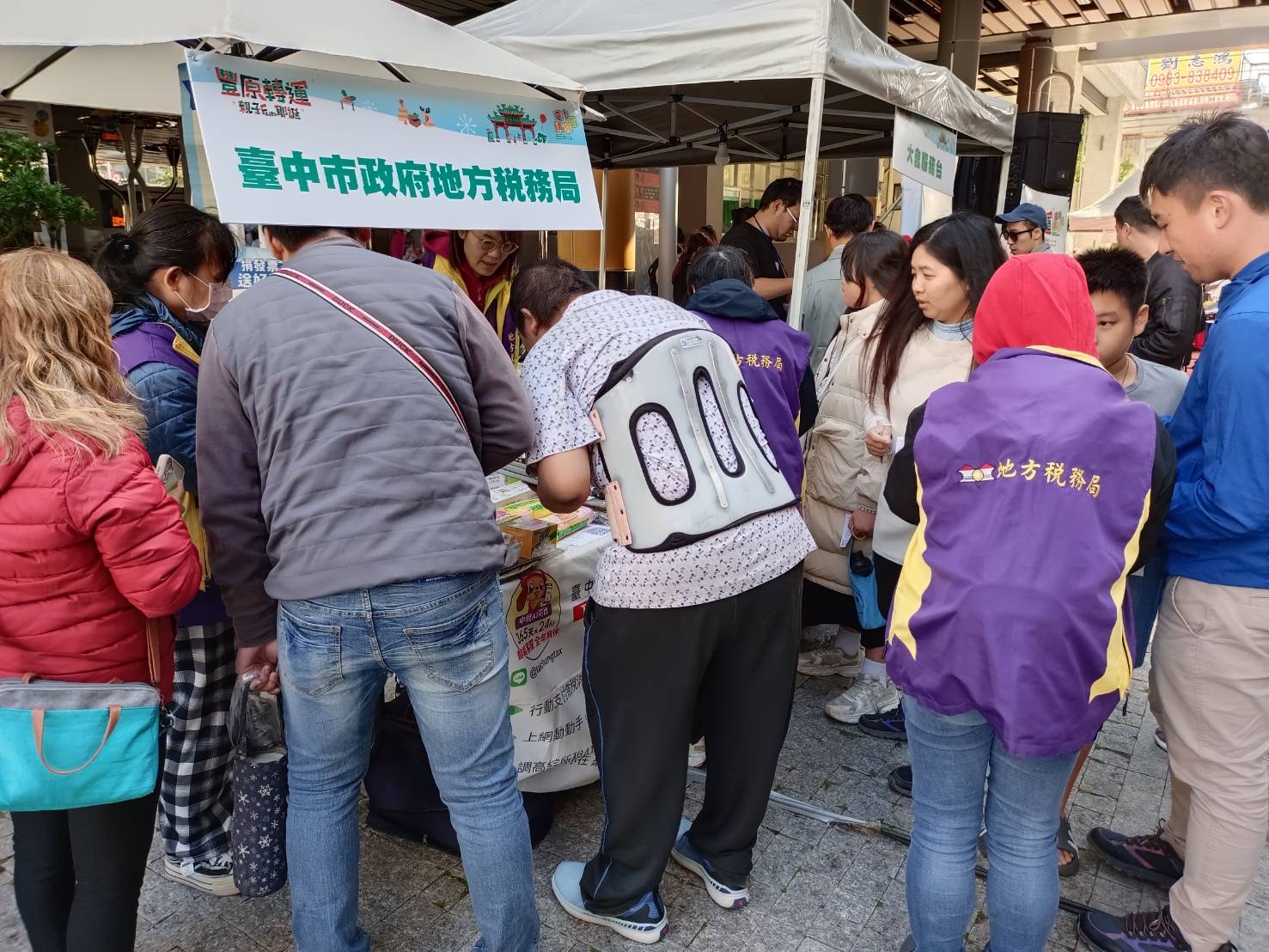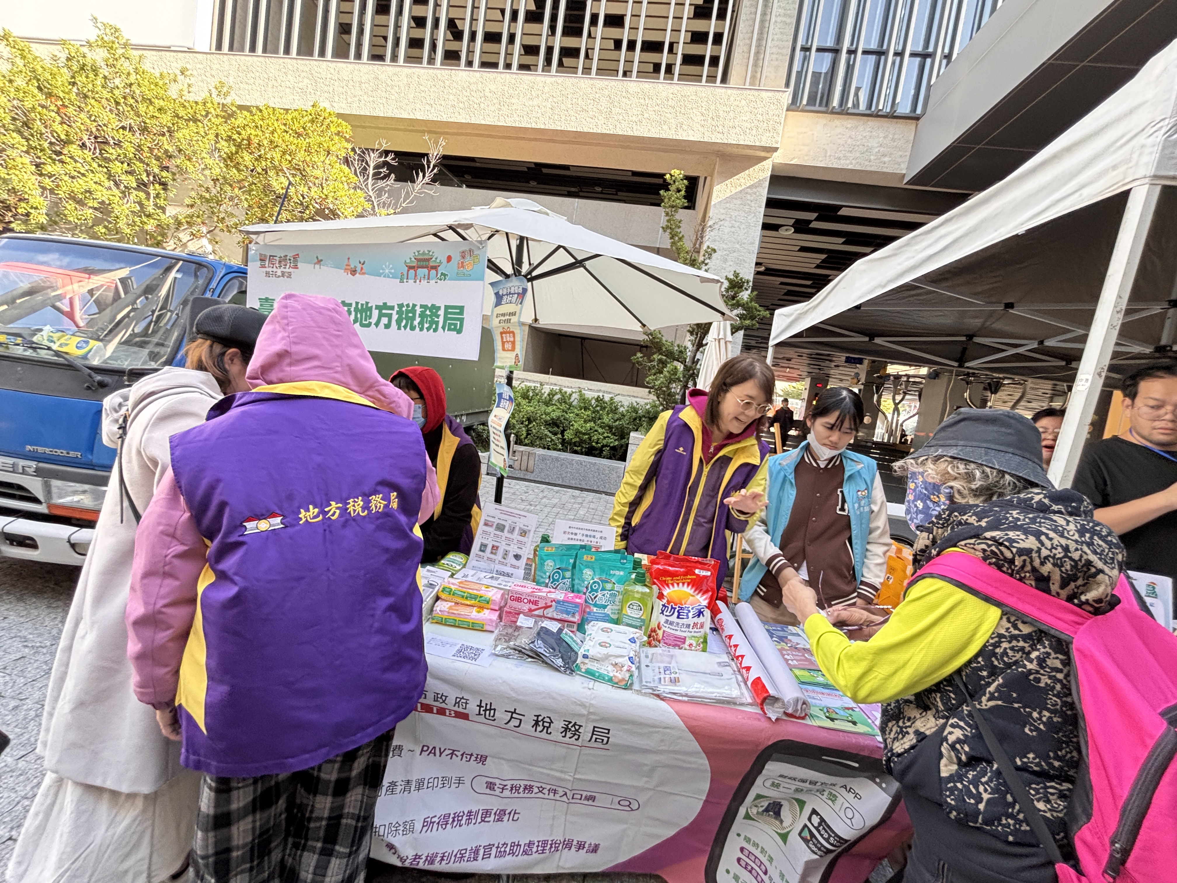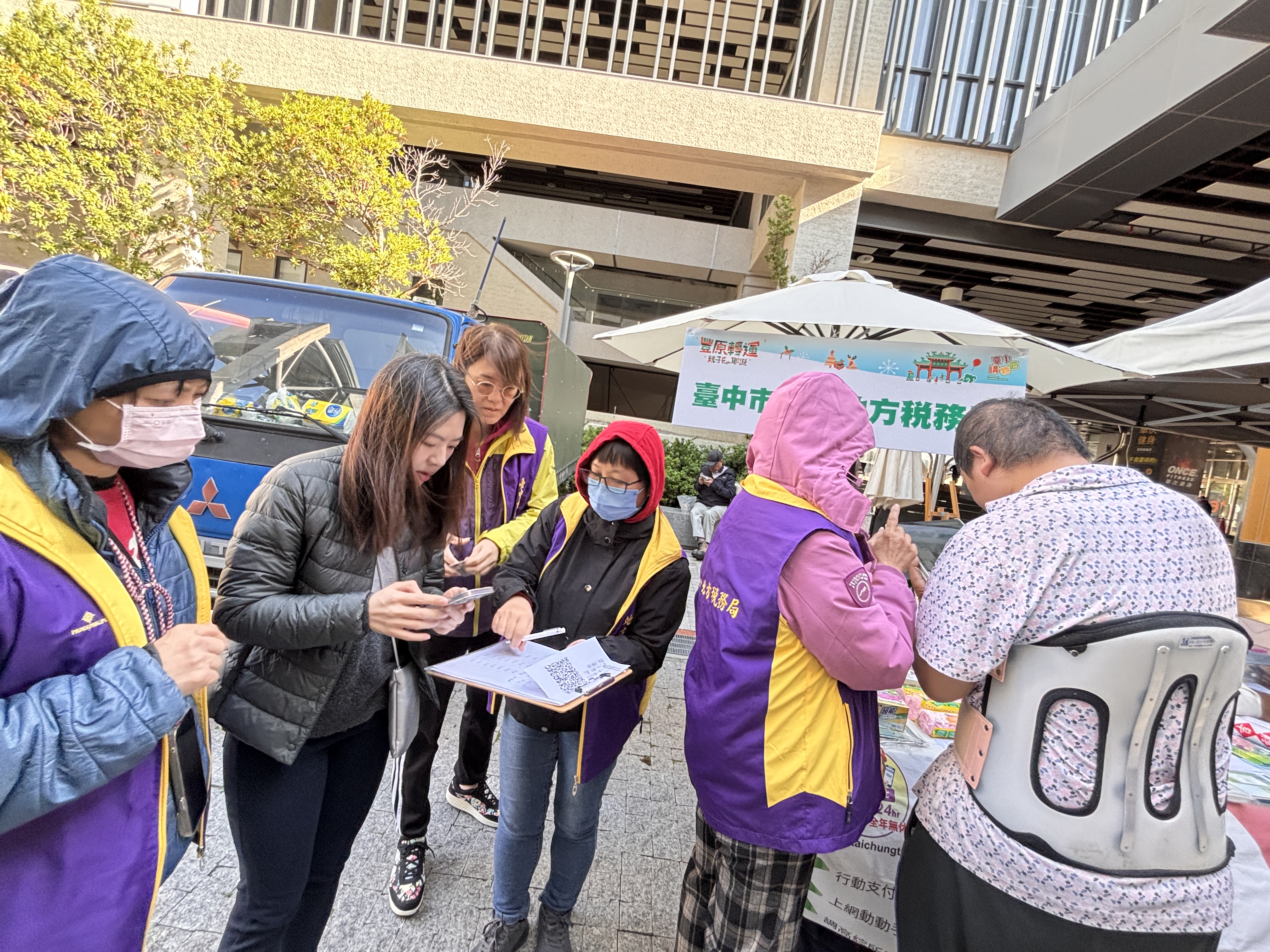 設置宣導服務台,提供與民眾互動之場地,懸掛布條宣導如何申請手機條碼及納稅者權利保護法等訊息。