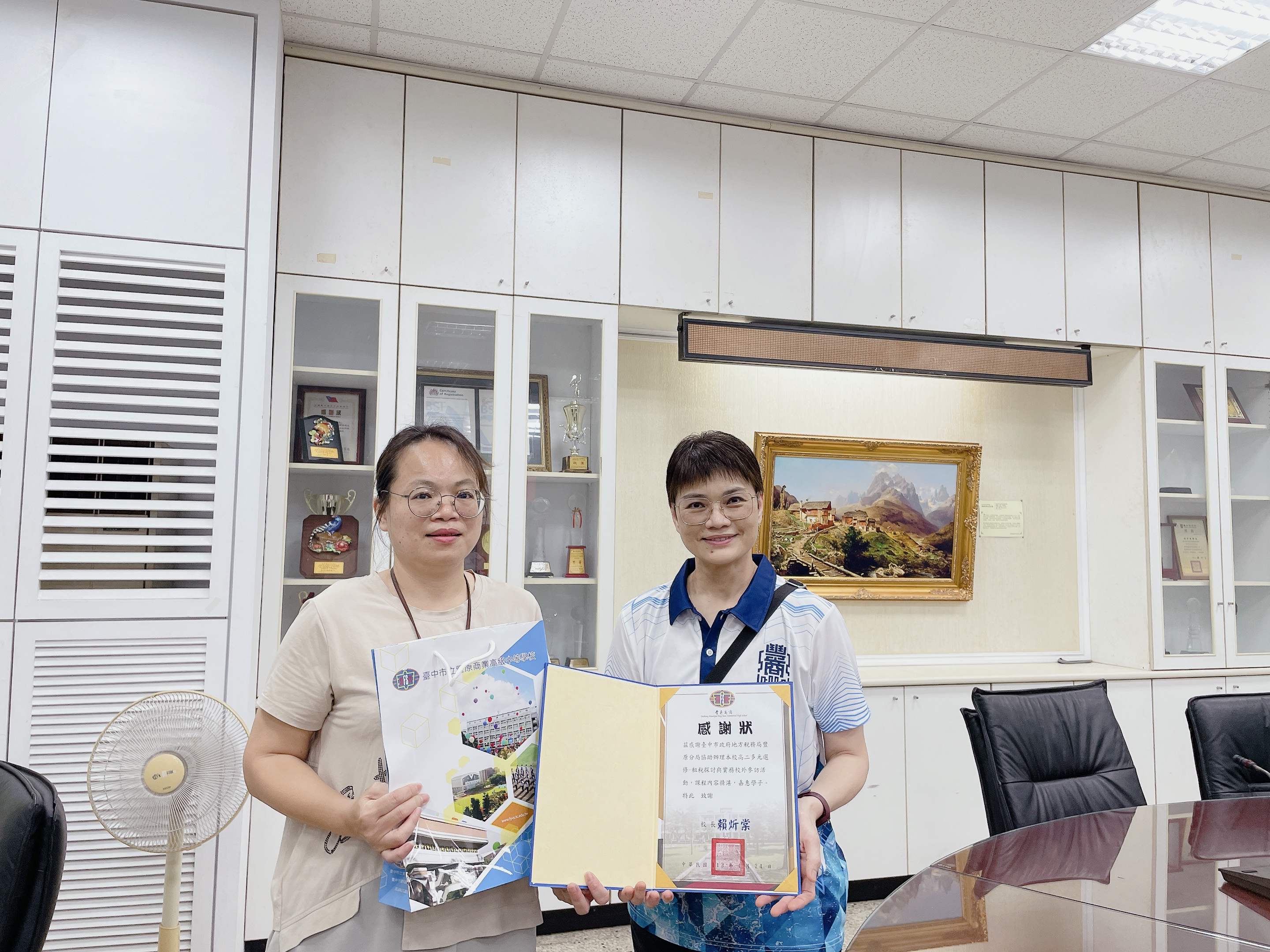 本分局積極配合112學年度課綱安排「租稅探討與實作」之地方稅相關課程,校方致贈感謝狀表達謝意。
