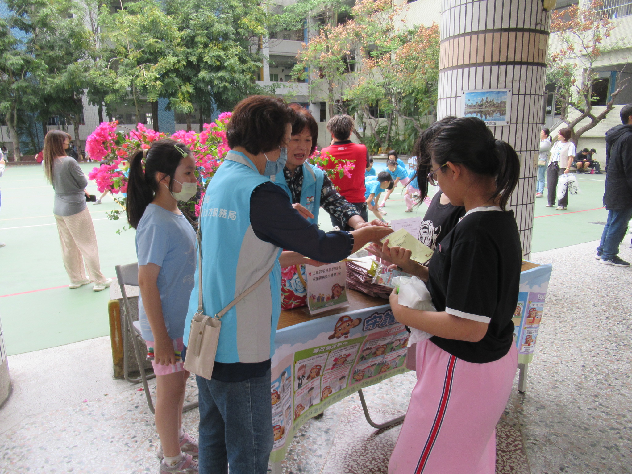 向學生介紹地方稅有哪些,及宣傳性別平等、全民國防等文宣。