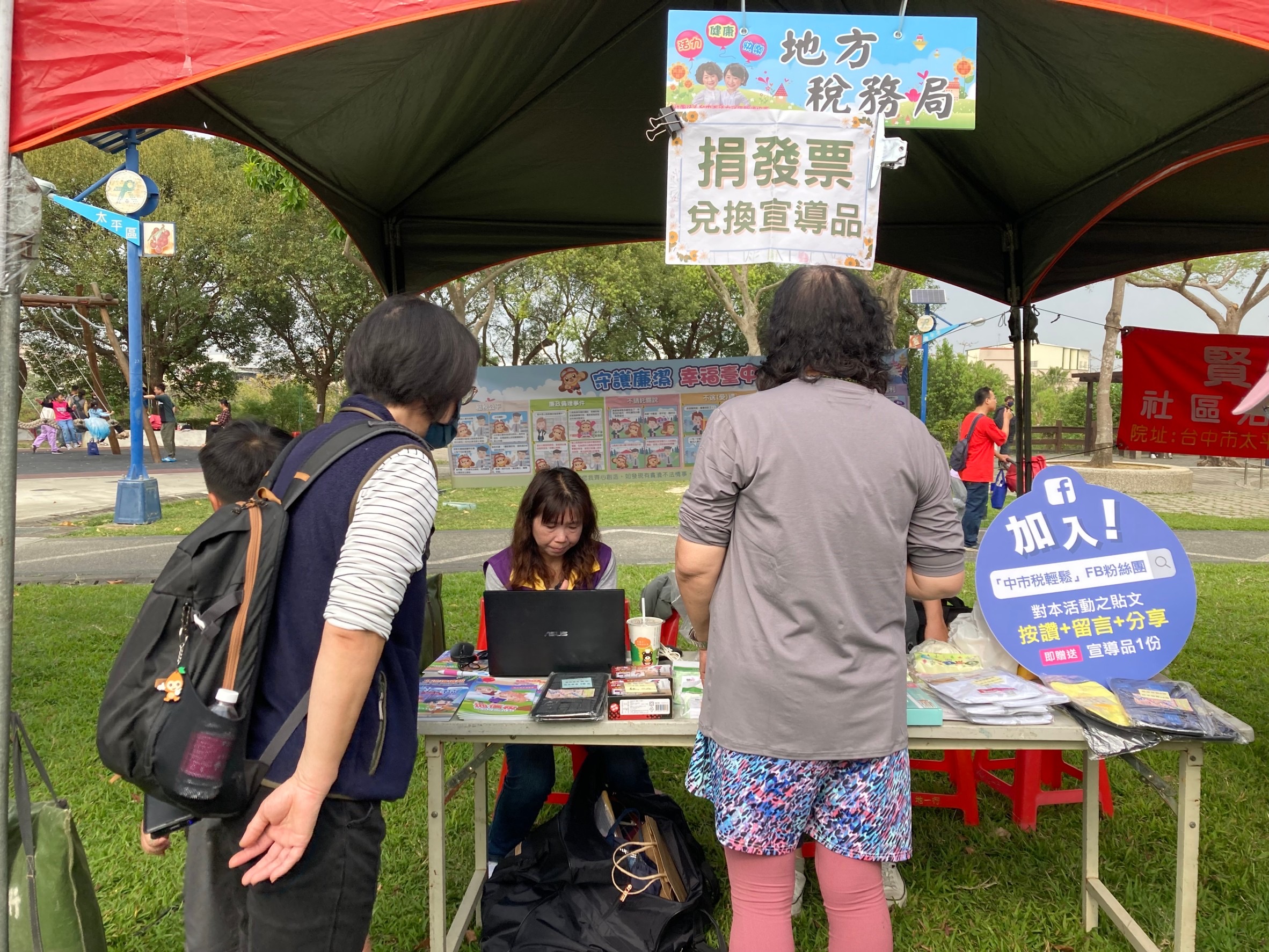 於活動現場放置宣導手冊供民眾索取,有關地方稅問題也可詢問現場工作人員喔!