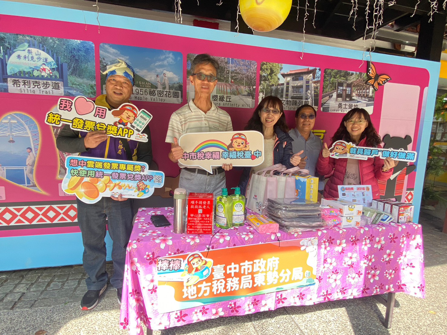 活力充沛的工作同仁與法務部行政執行署臺中分署的夥伴們已將各式宣導用品就定位,準備好向民眾宣導地方稅基本概念、節稅方法及納稅者權利保護等。