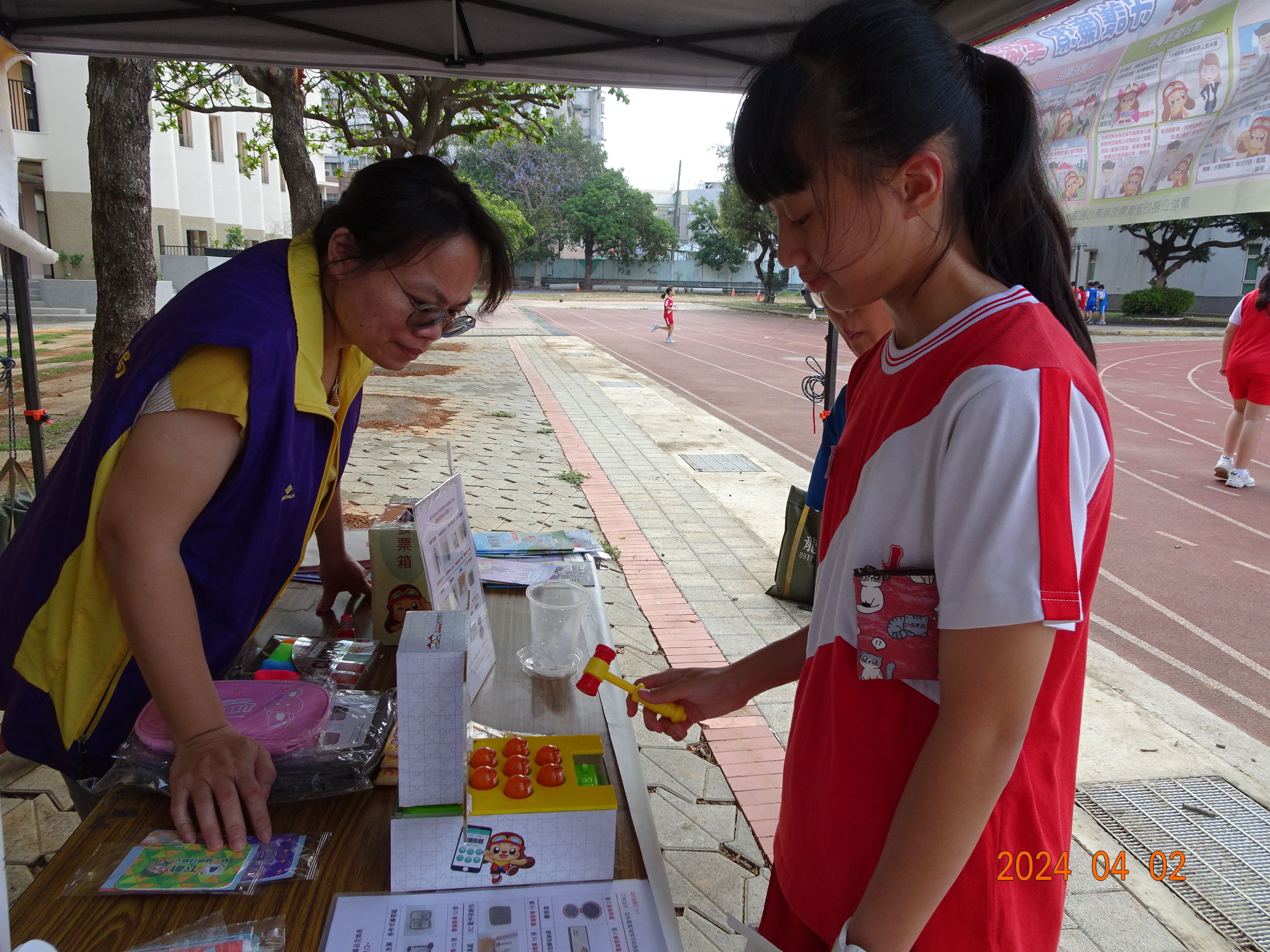 宣導同仁透過打地鼠遊戲與同學互動,透過遊戲過程使同學們有效學習到雲端發票的小知識。