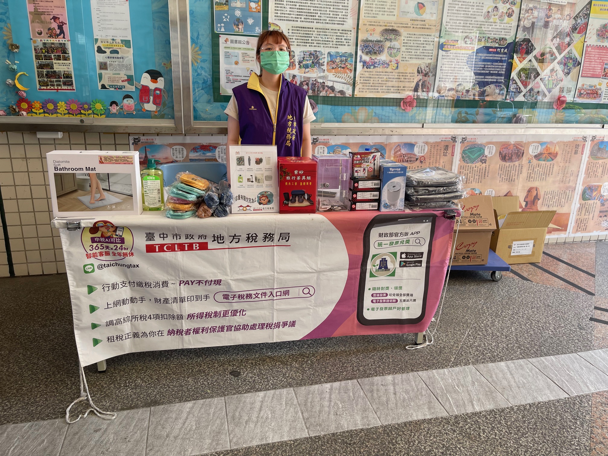攤位提供各稅文宣手冊供師生們取閱,如有疑問可立即解答,推廣電子稅務文件入口網、行動支付繳稅、統一發票兌獎APP等,歡迎大家多加利用。