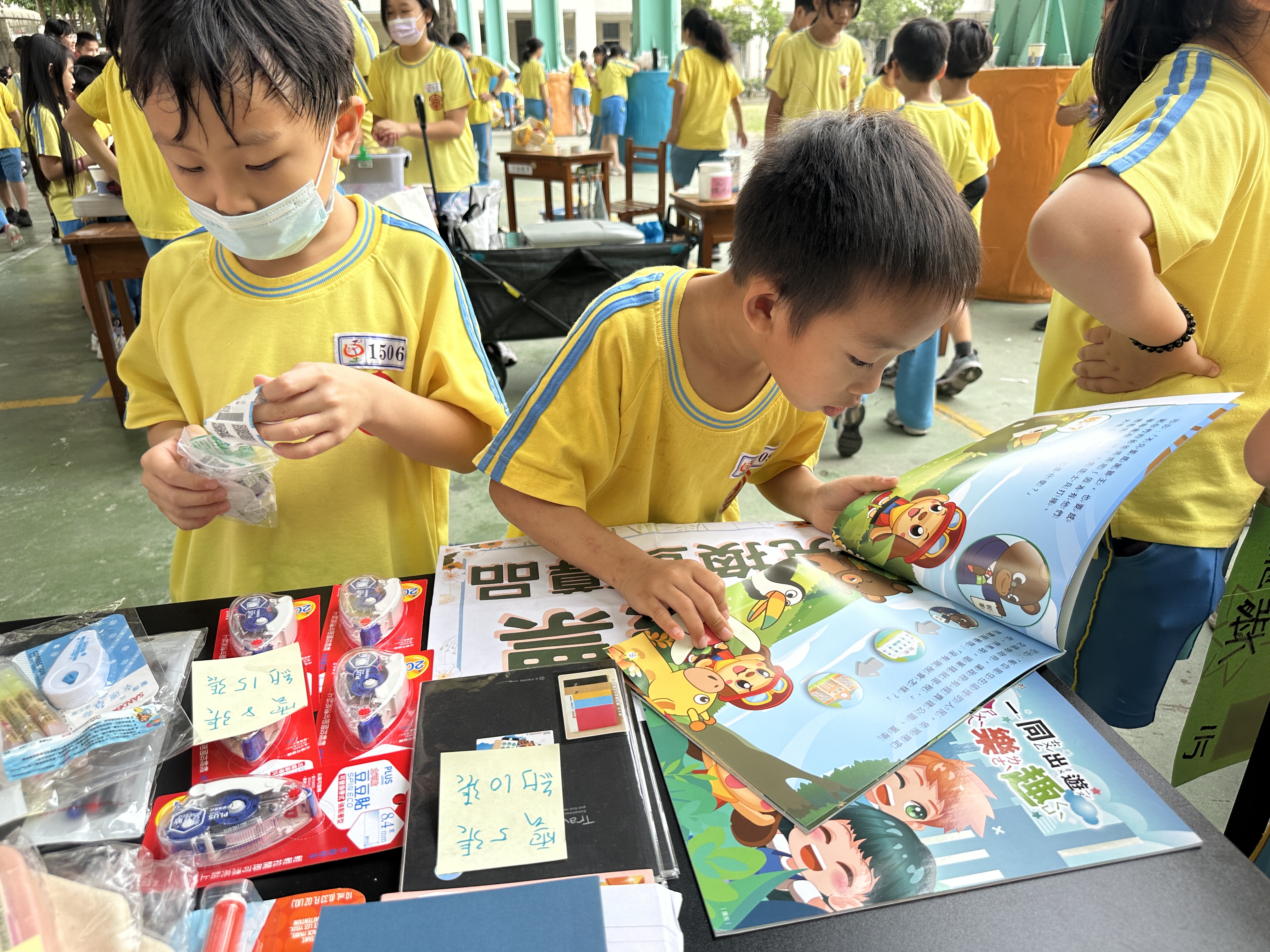 宣導品項豐富,同學們好奇駐足,停下腳步一同響應公益。