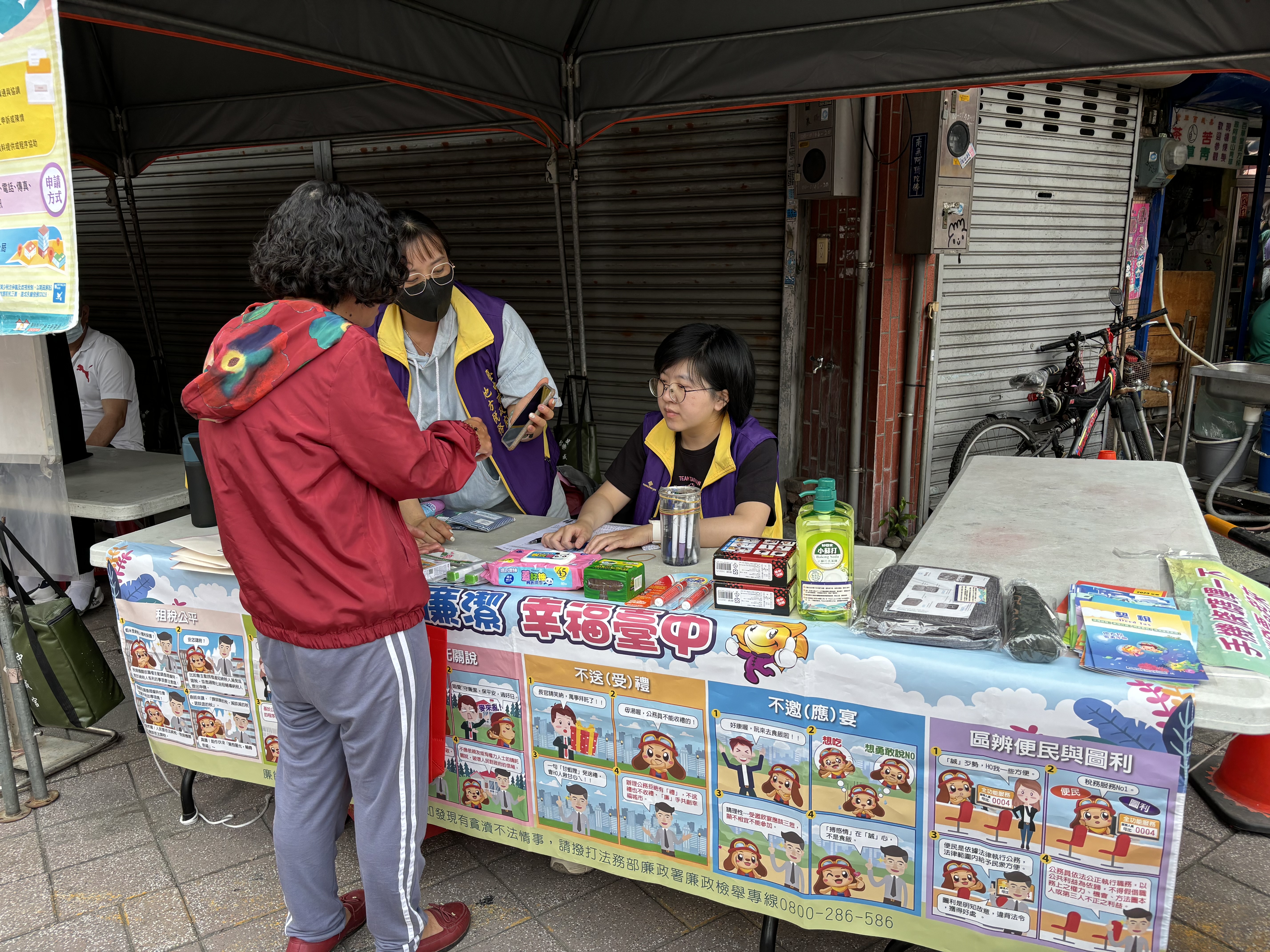 現場新人們也響應捐發票送愛心兌換宣導品,募集發票將捐贈社會福利團體。