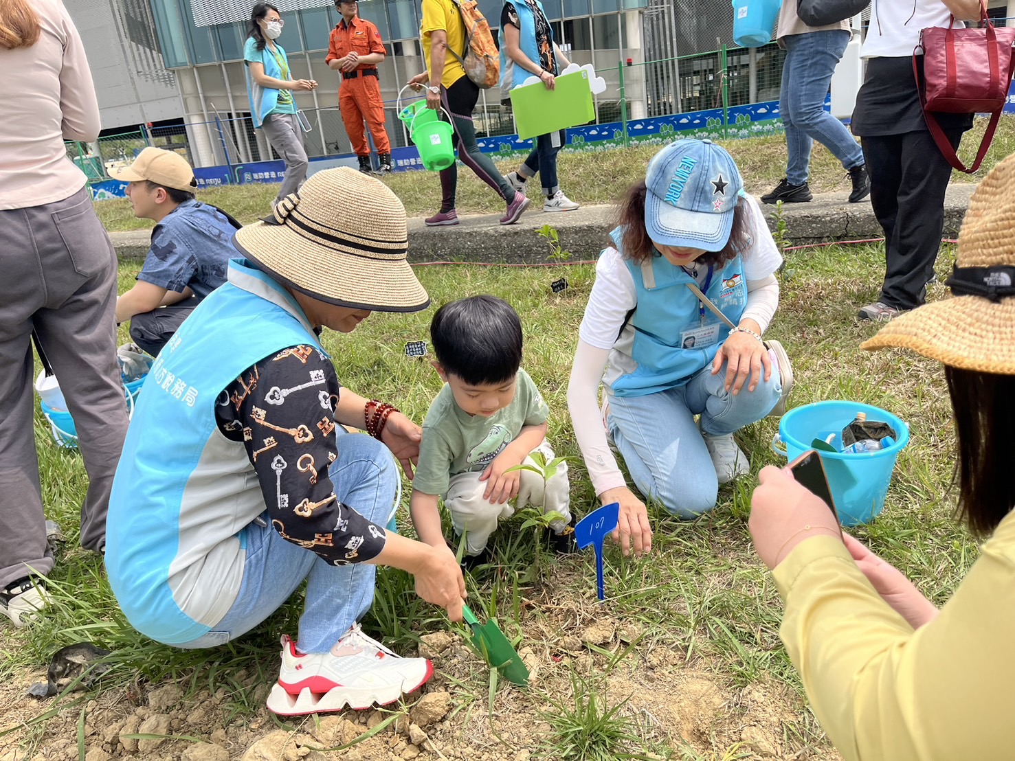 志工偕同家人一起參與植樹活動,增進親子互動及倡導環境永續經營概念。