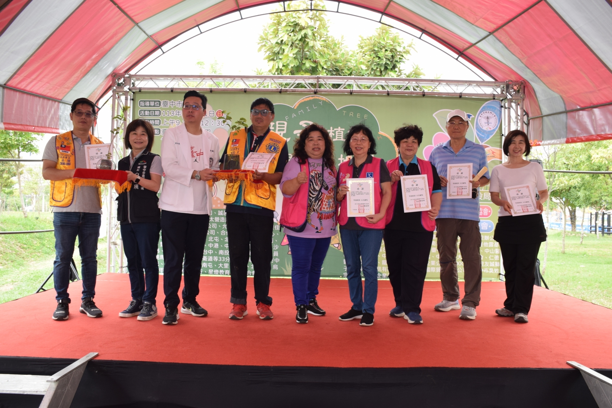 百位以上民眾一同用鏟子挖土,將桂花樹苗放入土裡並用水灌溉,期望希望之苗長大茁壯,綠美化公園。