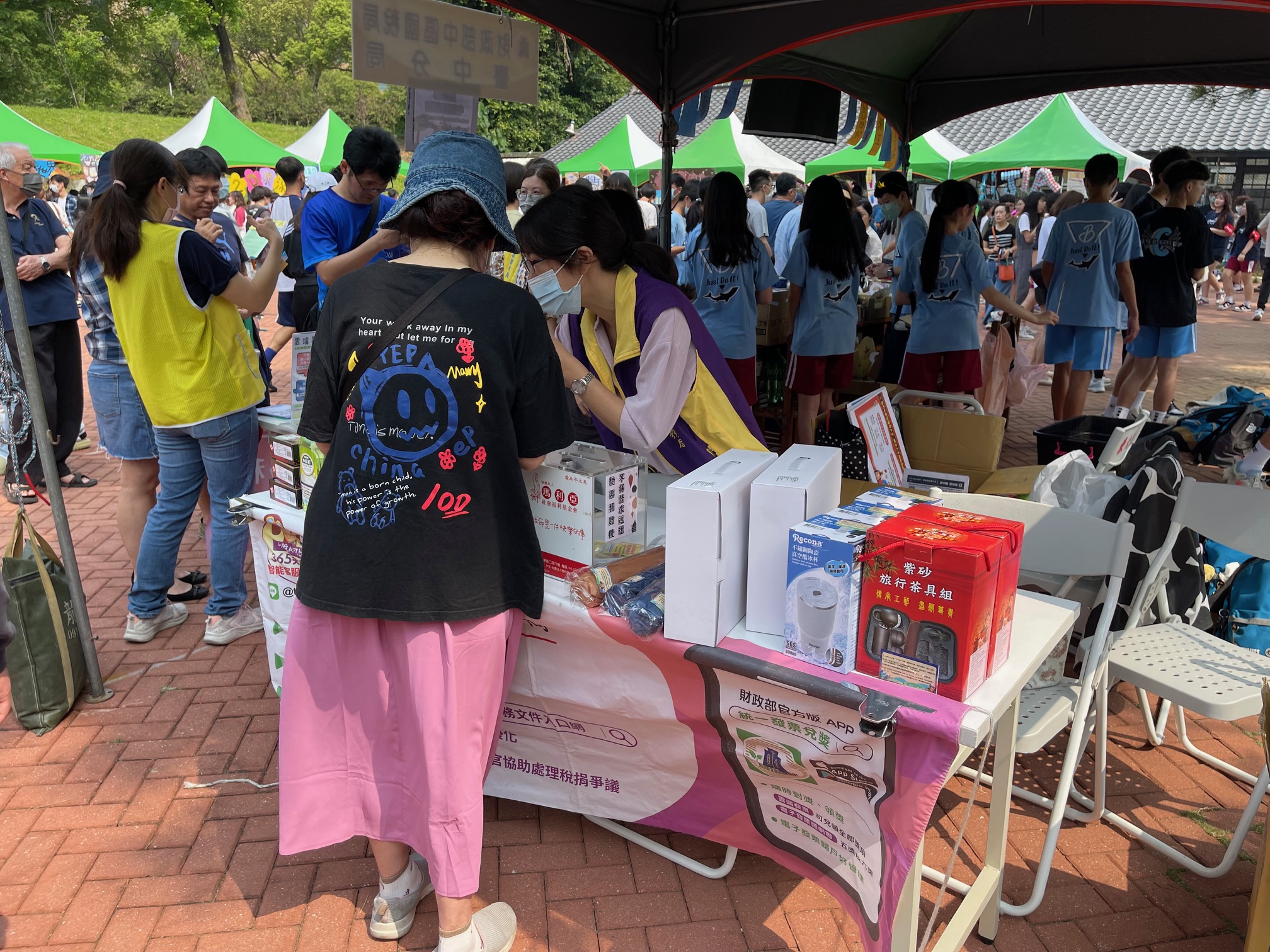 東大附中歡慶65週年校慶,文心團隊、國稅局與民眾們一同參與校慶園遊會,今年首次開放幼兒園家長參與,相比往年場面更加擁擠熱鬧。