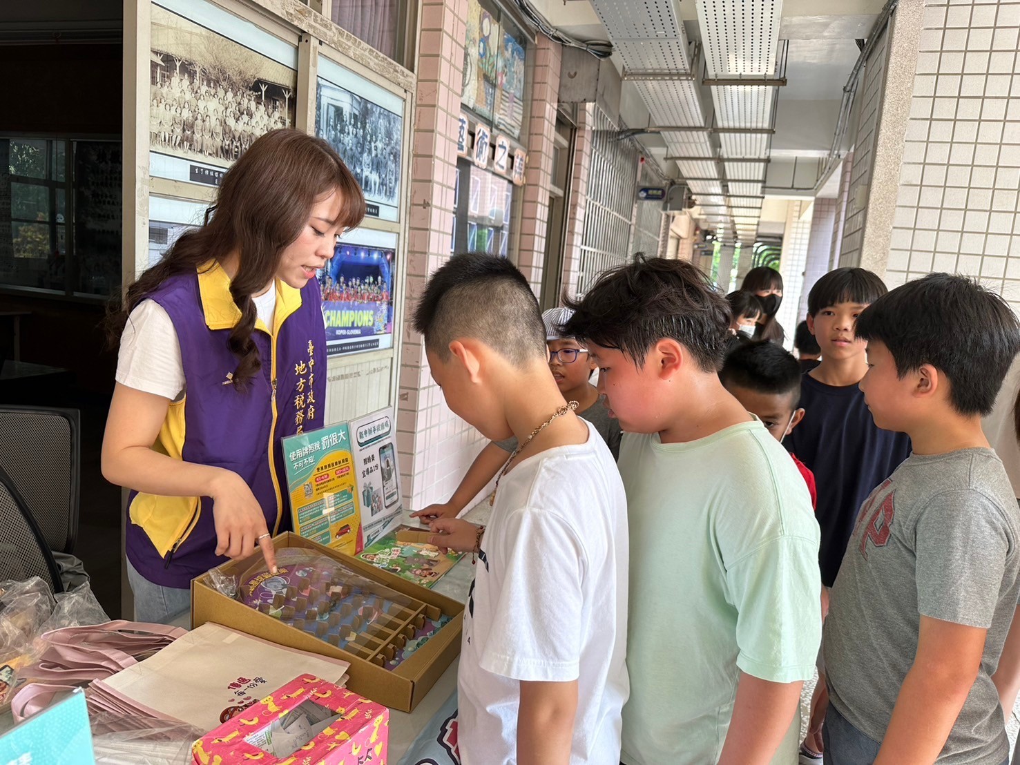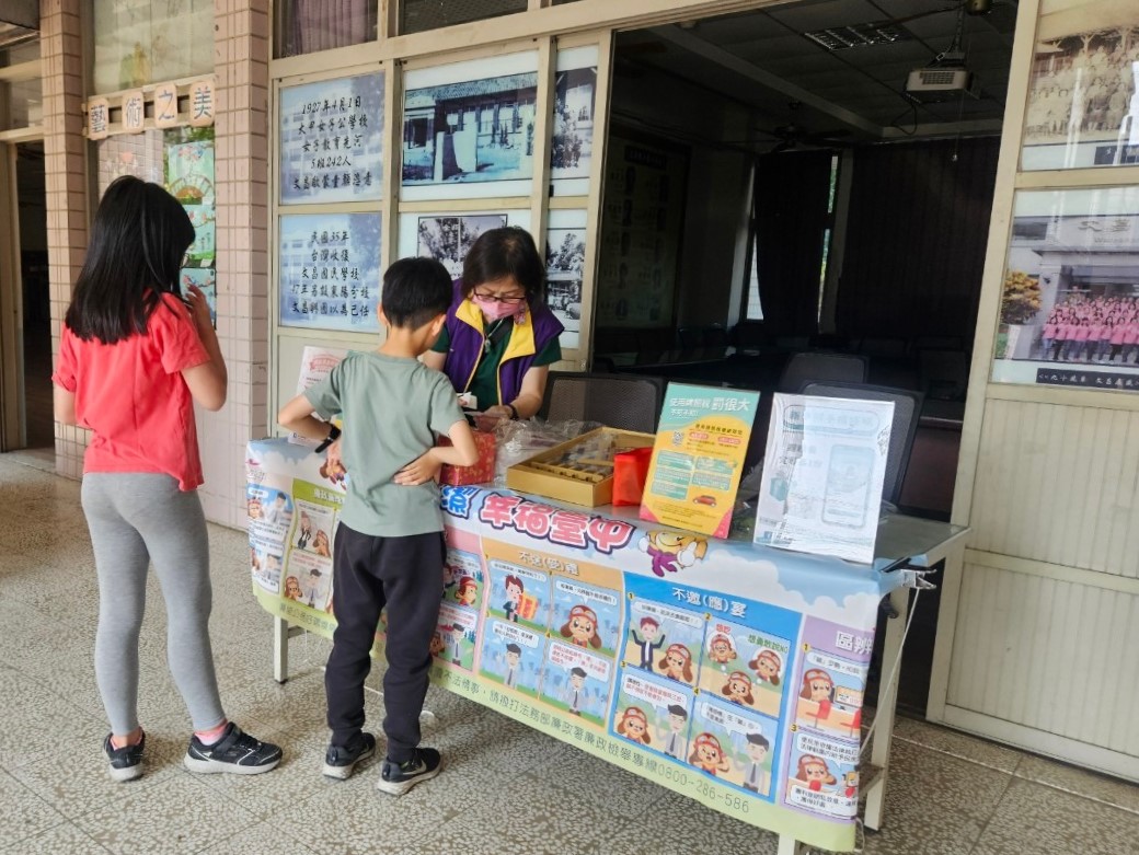 配合文昌國小兒童節闖關辦理學校巡迴教育活動,設置稅務諮詢台,歡迎師生們一同捐發票換好禮。