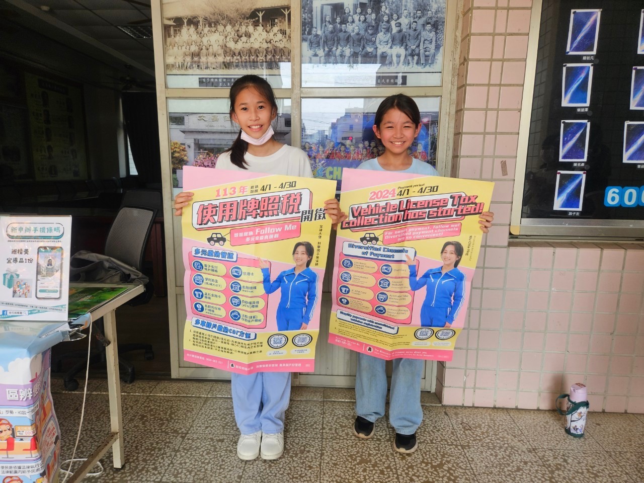 適逢使用牌照稅開徵,透過中、英文海報宣導繳納期限、多元繳稅管道及牌照稅歸戶等訊息。