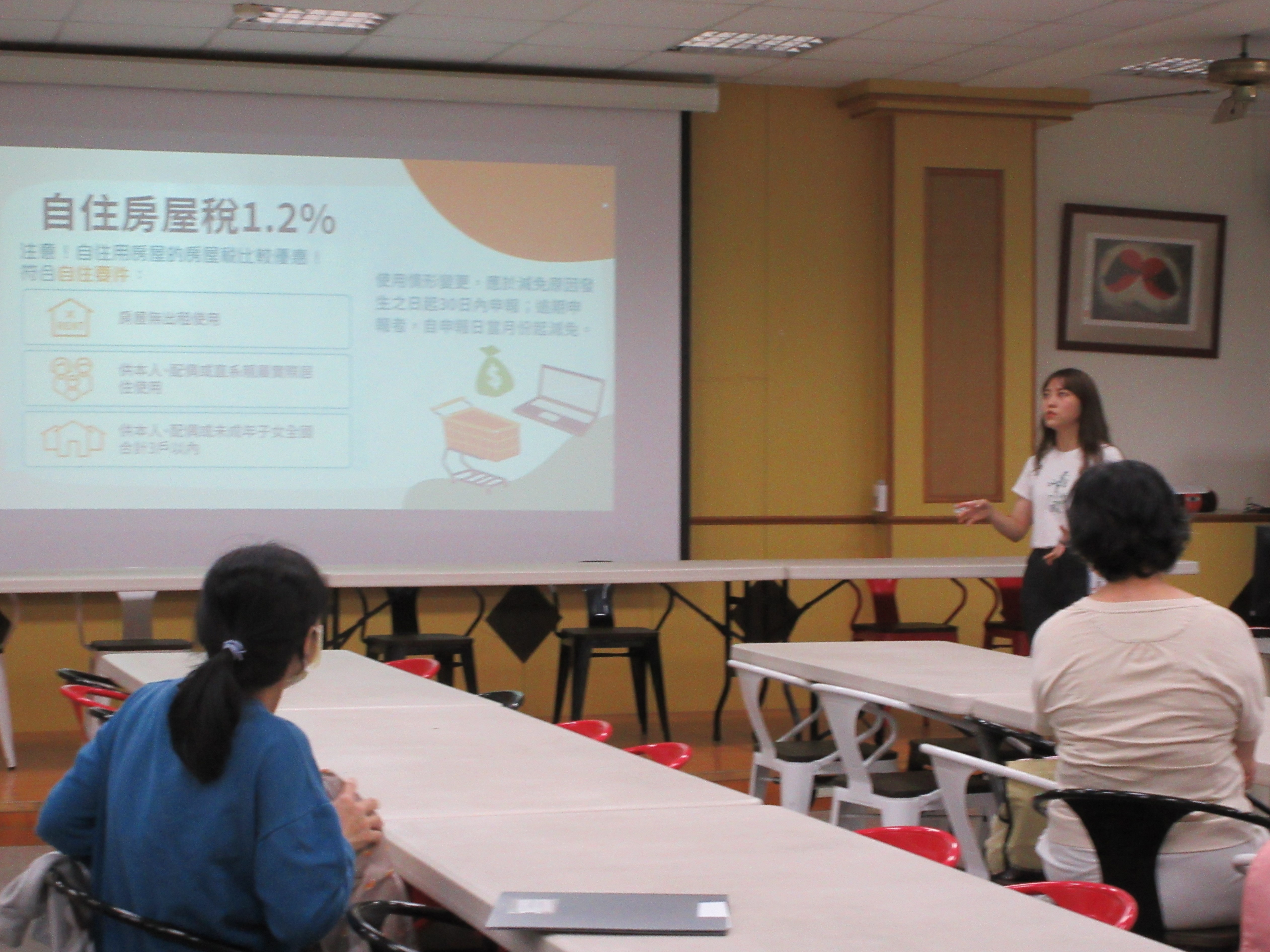 講師講解房屋稅及地價稅自住房屋的優惠稅率及申請方式,並說明112年民法成年年齡下修對地方稅優惠稅率的影響。