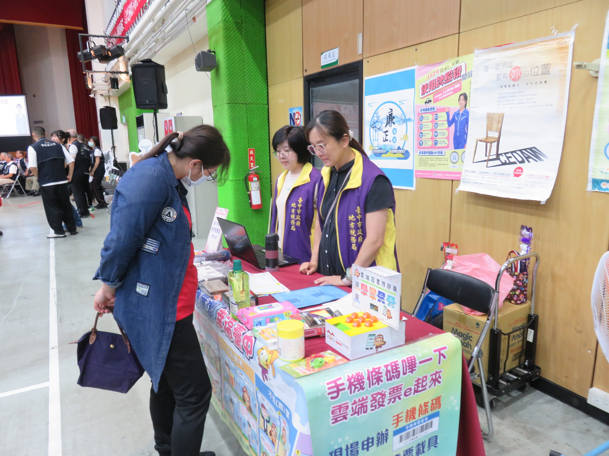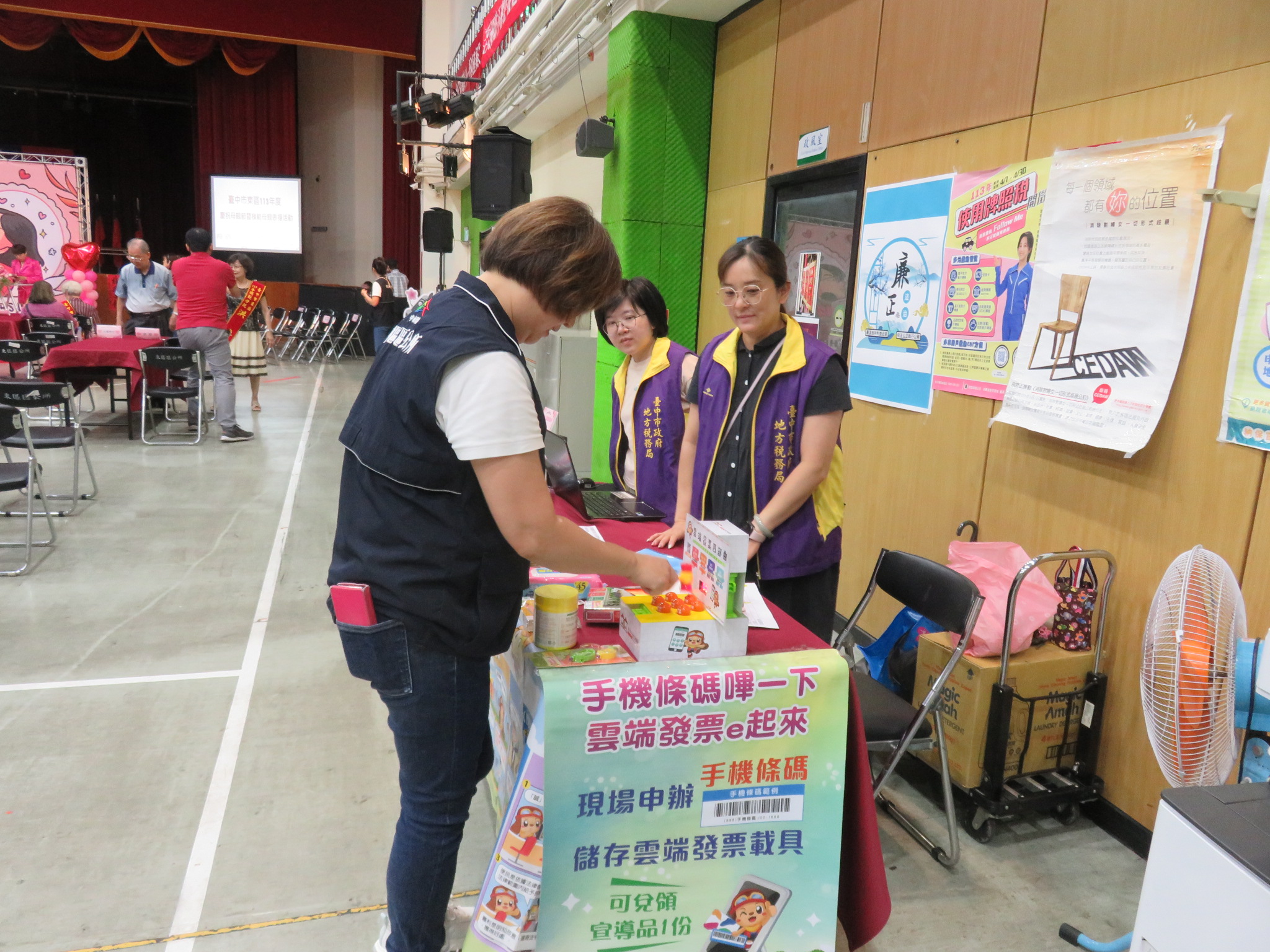 現場推廣申辦手機條碼、下載「統一發票兌獎APP」及協助設定中獎獎金自動匯款帳戶。