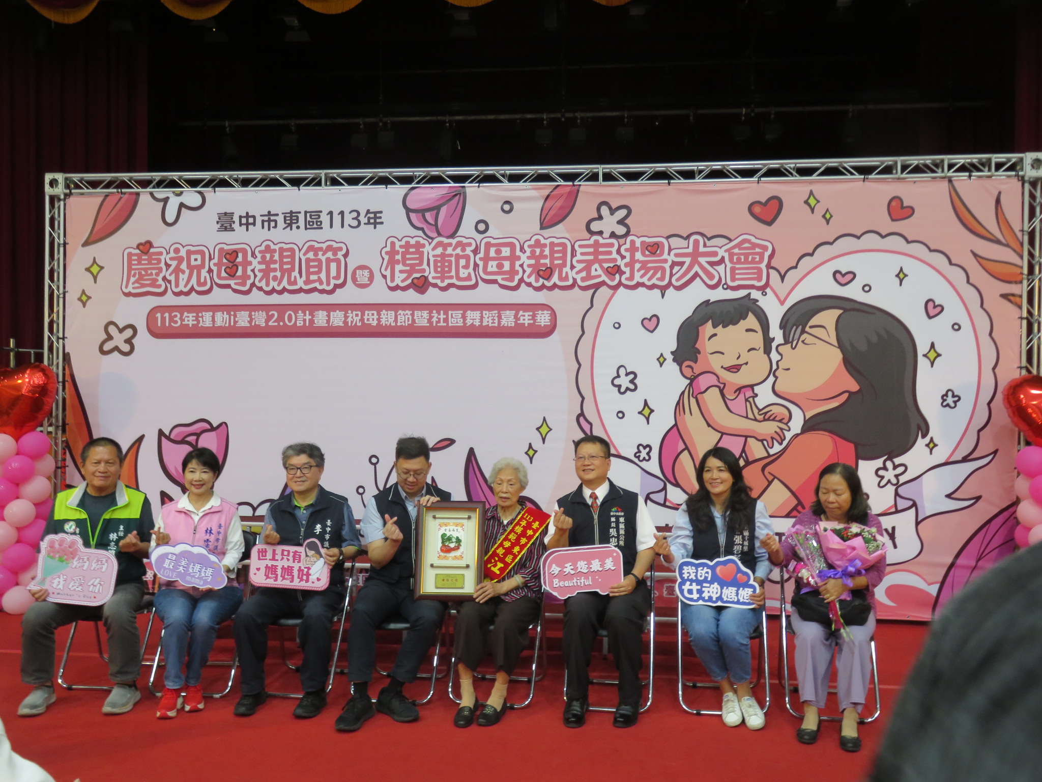 慶祝母親節暨模範母親表揚活動,獲獎的媽媽與家人們開心的合影,祝全天下溫暖付出的媽媽們「母親節快樂!」。