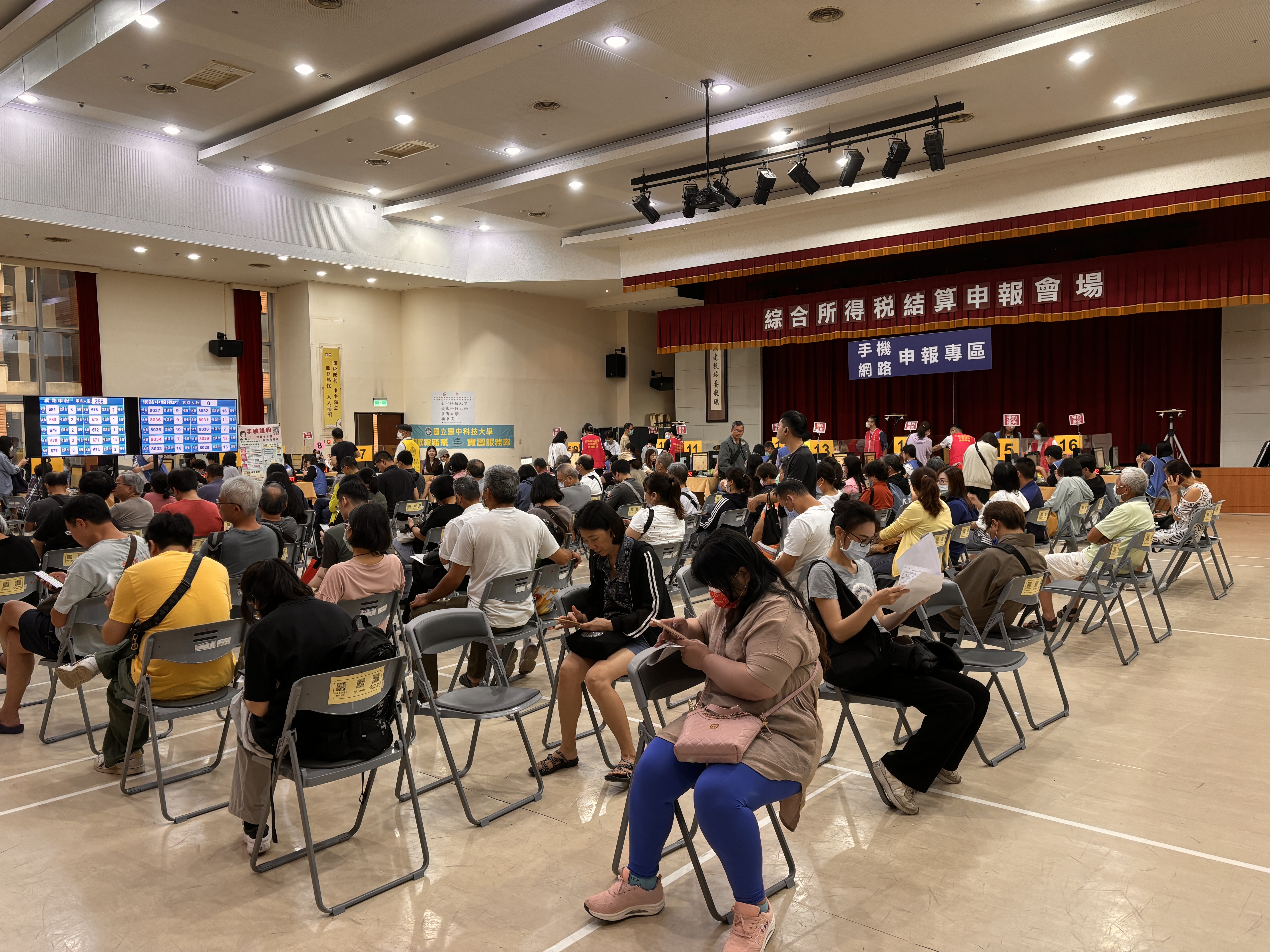 5月1日當天申報現場人潮滿滿,本分局也在現場設攤宣導,提供地方稅務諮詢。